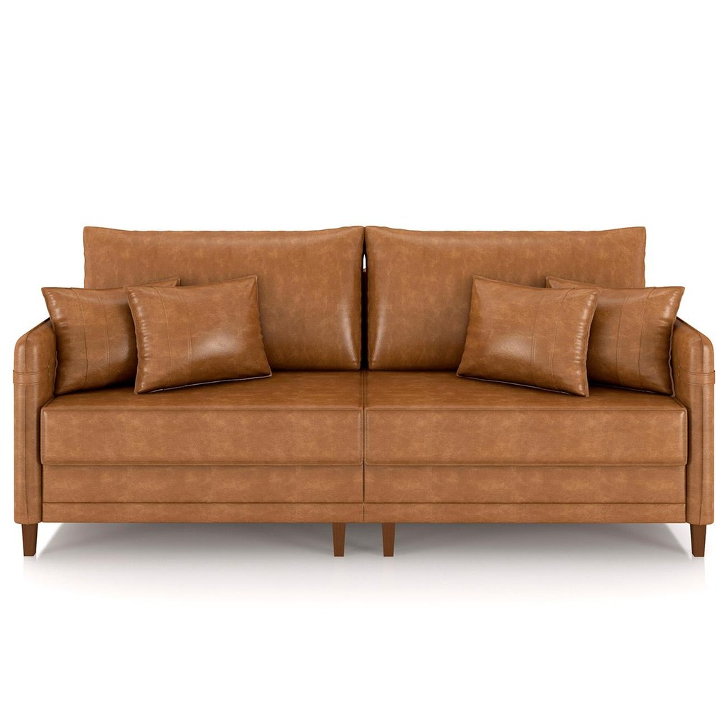 Sofá 3 Lugares Living 192cm Pé Madeira Zoe Sintético Camel Z08 - Mpozenato