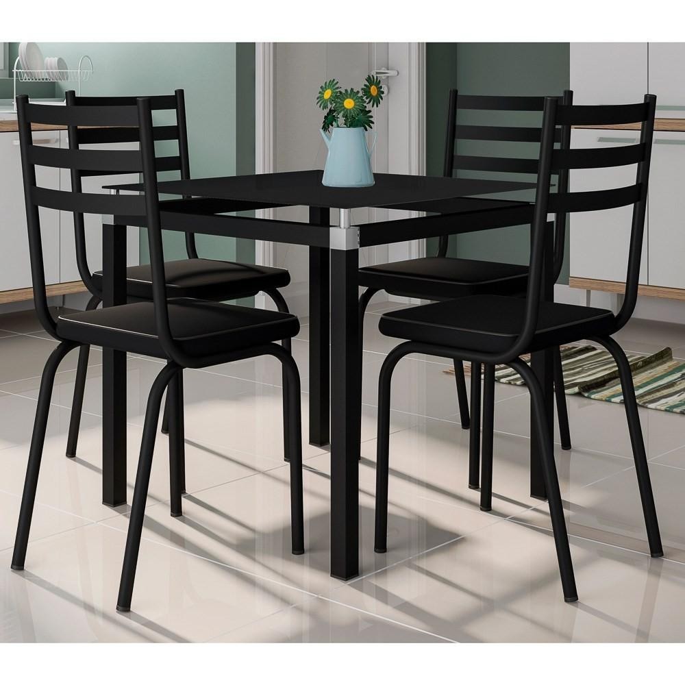 Jogo de Mesa Malva 75cm e 4 Cadeiras 118 Preto - Artefamol