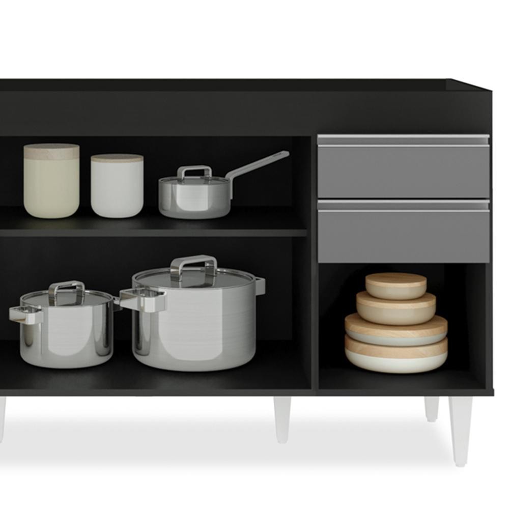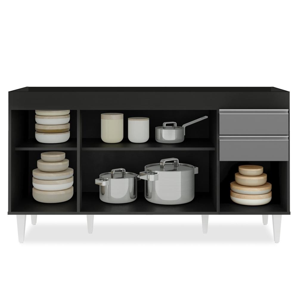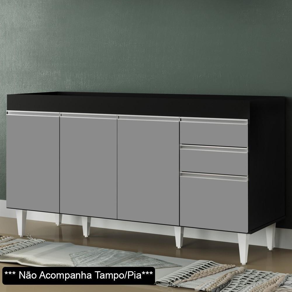 Balcão Gabinete para pia sem Tampo 150cm Marrocos Preto/Cinza - Lumil