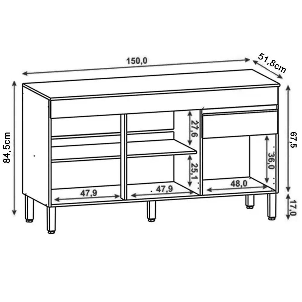 Balcão Gabinete para Pia sem Tampo 150cm Lina Z06 Gris - Mpozenato