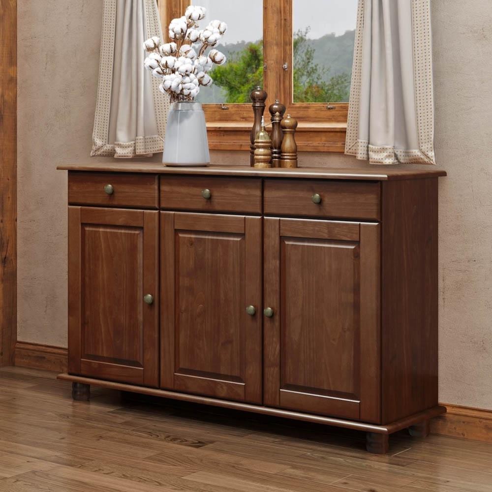 Balcão Buffet Sala de Jantar Rústico 128cm 3 Portas 3 Gavetas Rubia F07 Café - Mpozenato