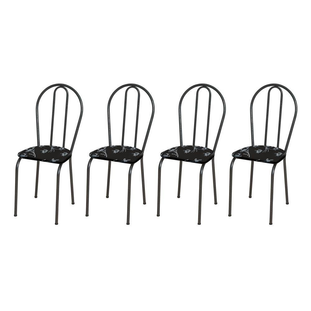 Kit 4 Cadeiras 004 Cromo Preto/Florido - Artefamol