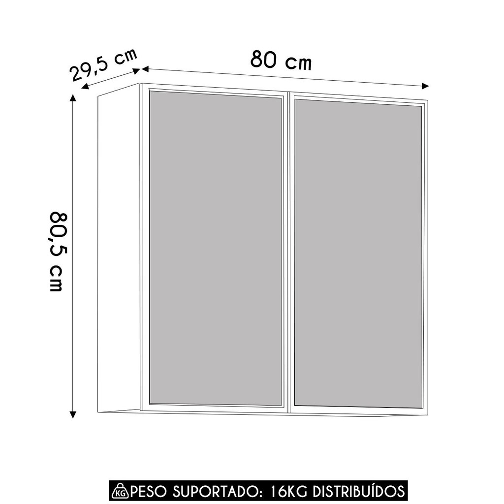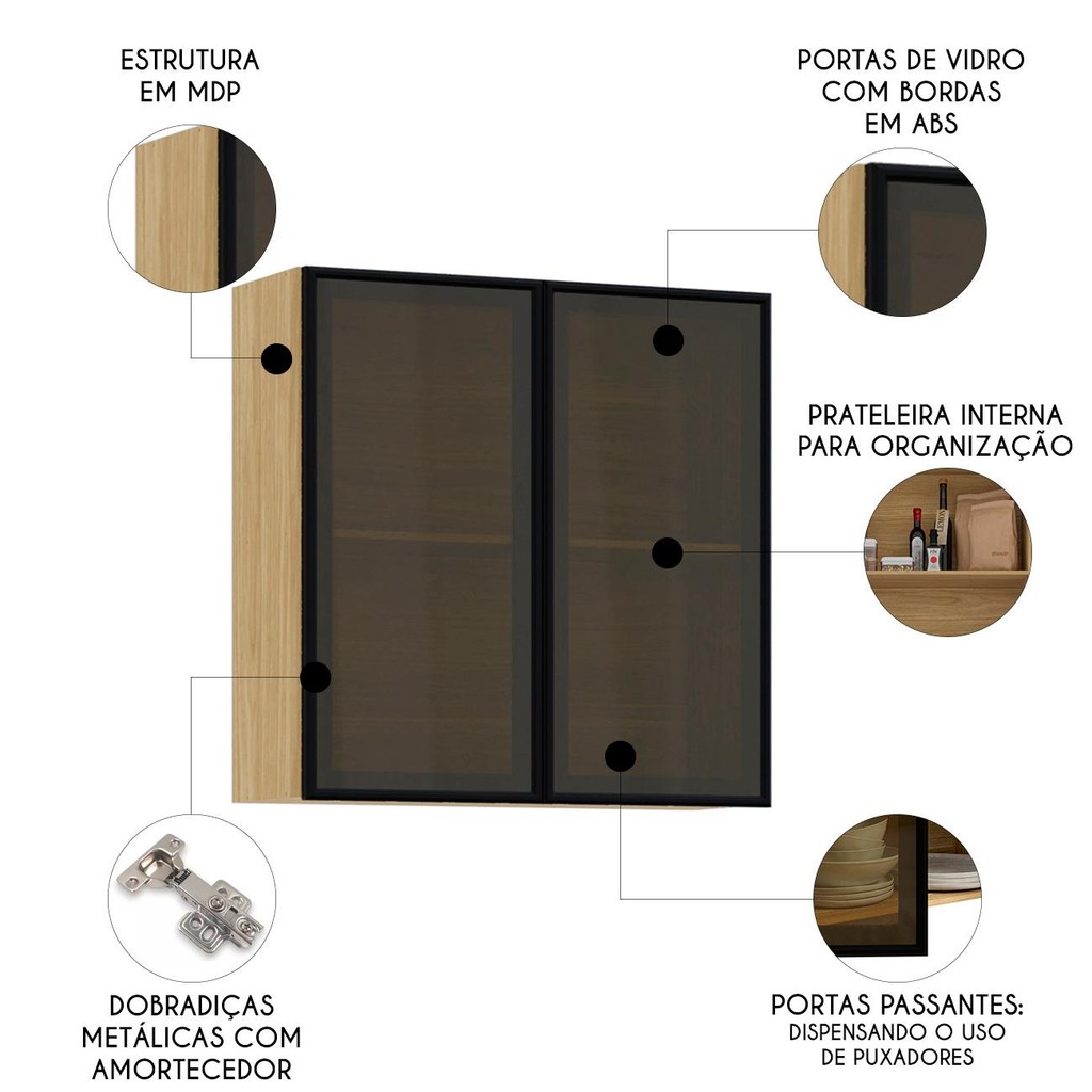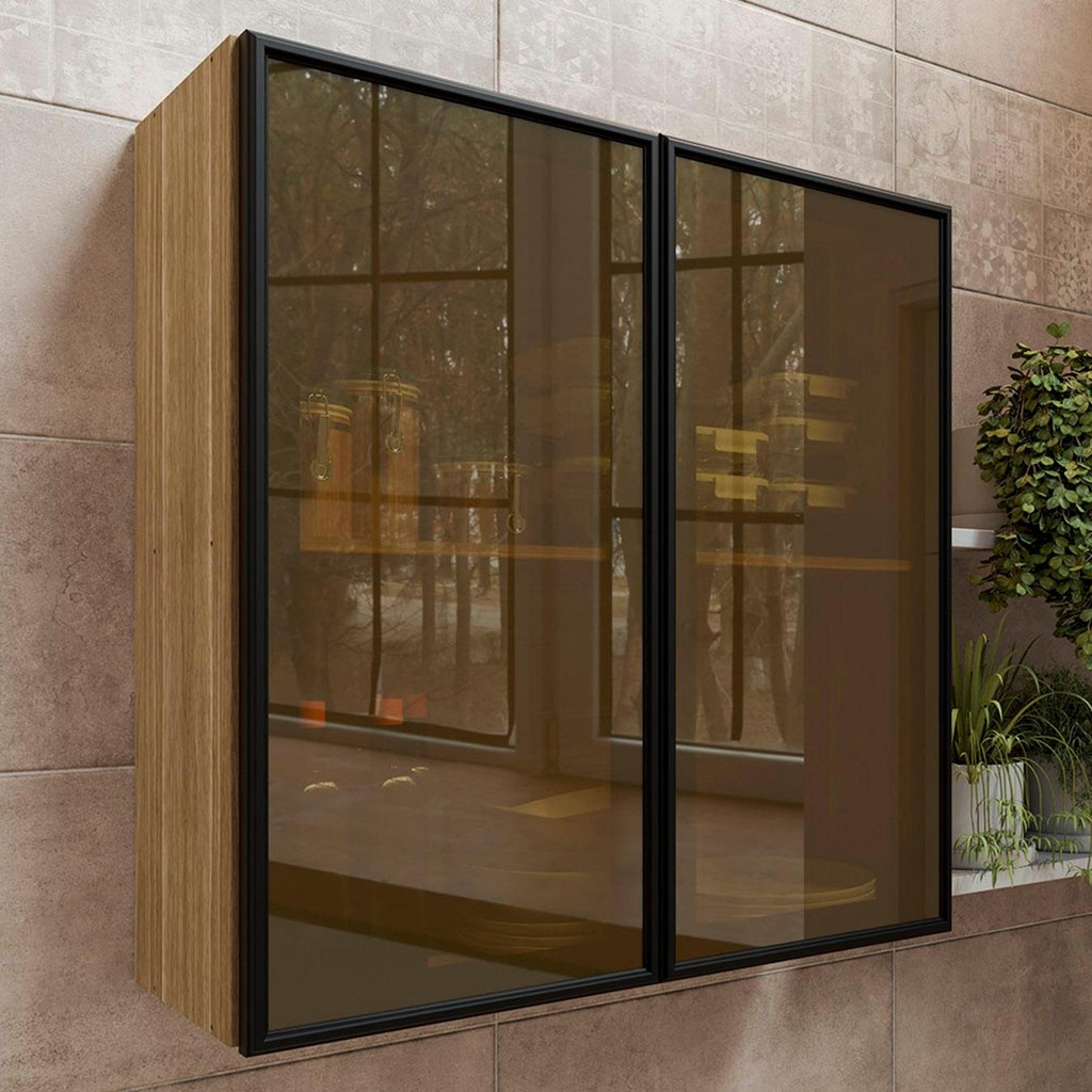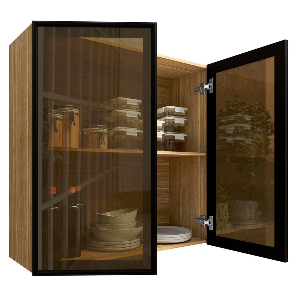 Armário de Cozinha 80cm 2 Portas de Vidro Minsk Freijó Z06 - Mpozenato