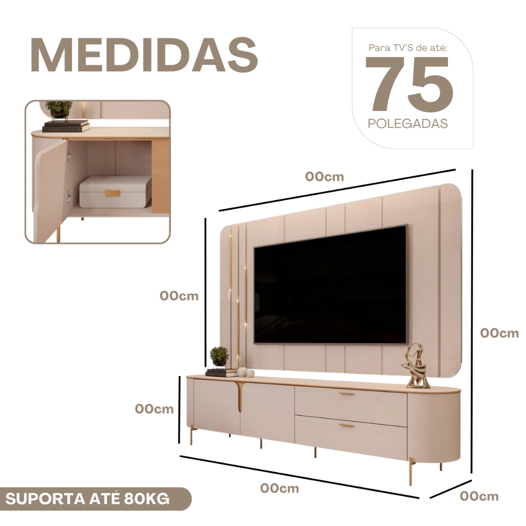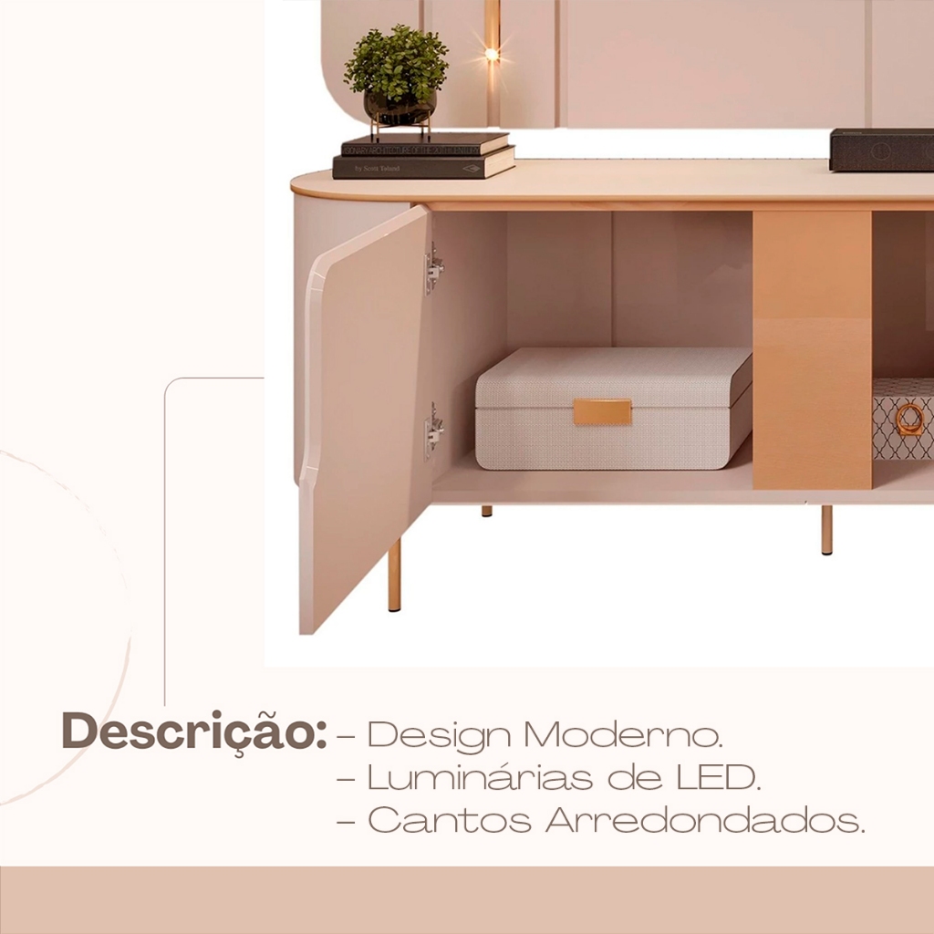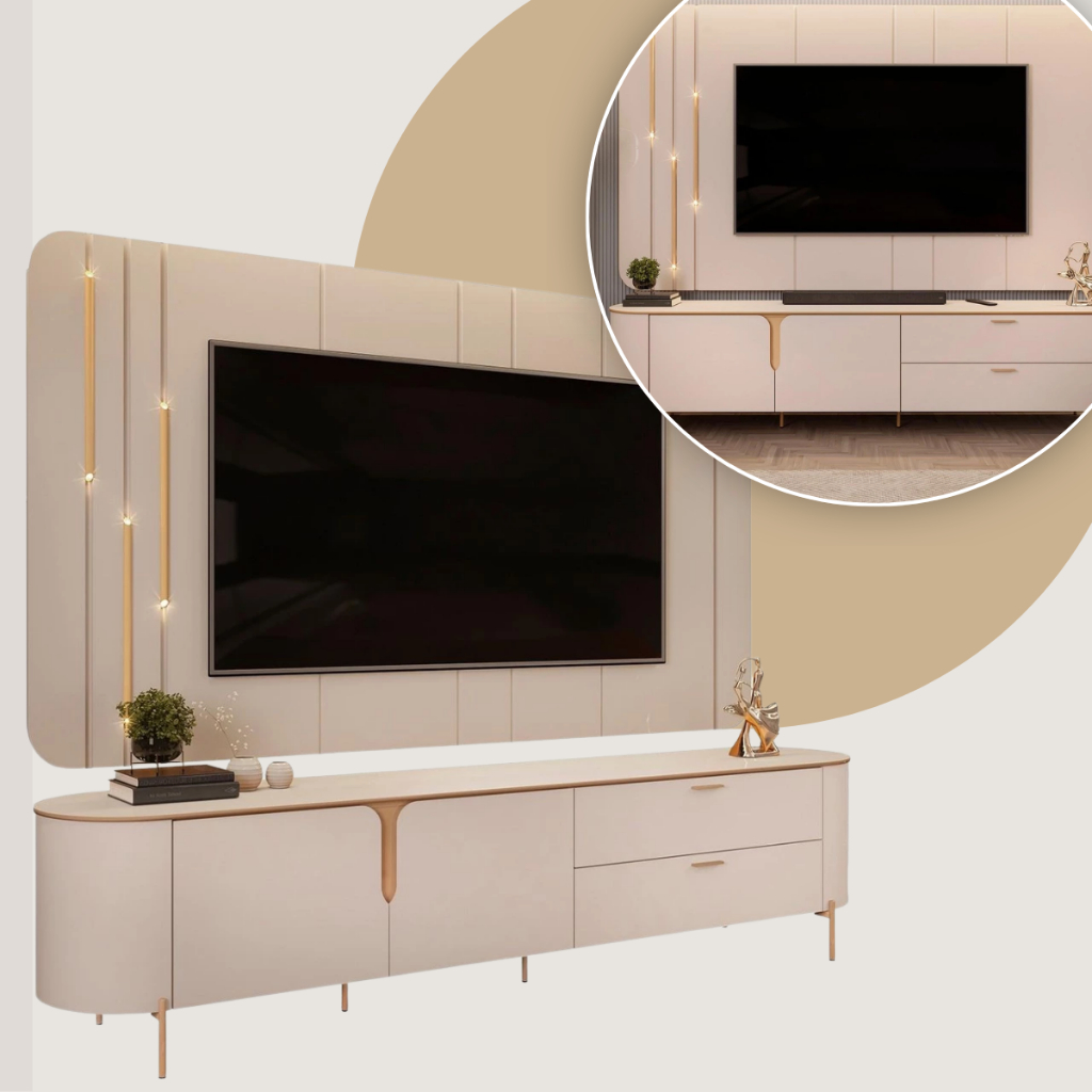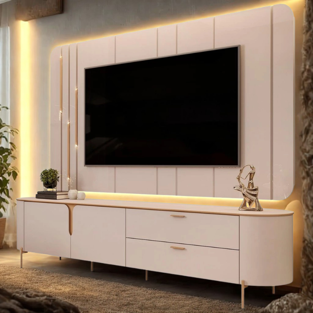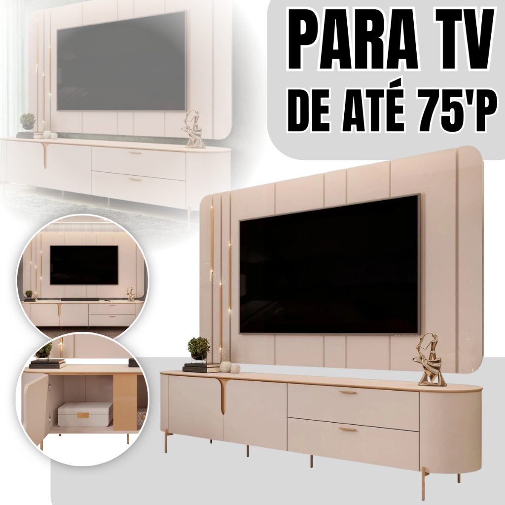 Painel Para TV 75 Pol e Rack Bancada 241cm Celi D04 Off White - Mpozenato