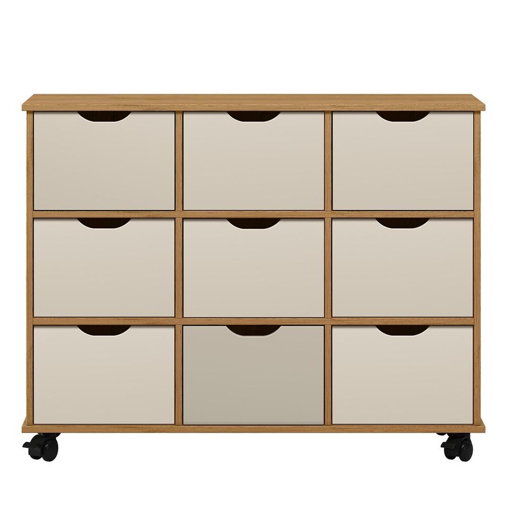 Nicho Organizador 9 Gavetas com Rodízios Freijó/Off White - Qmovi
