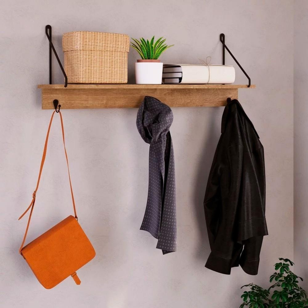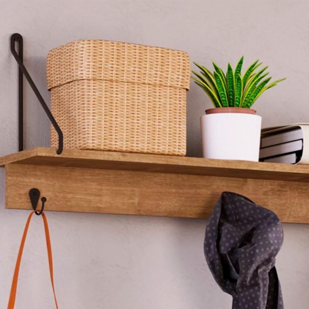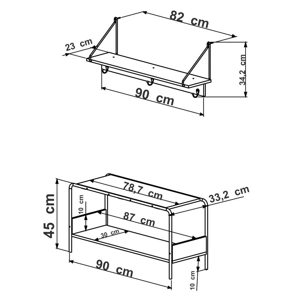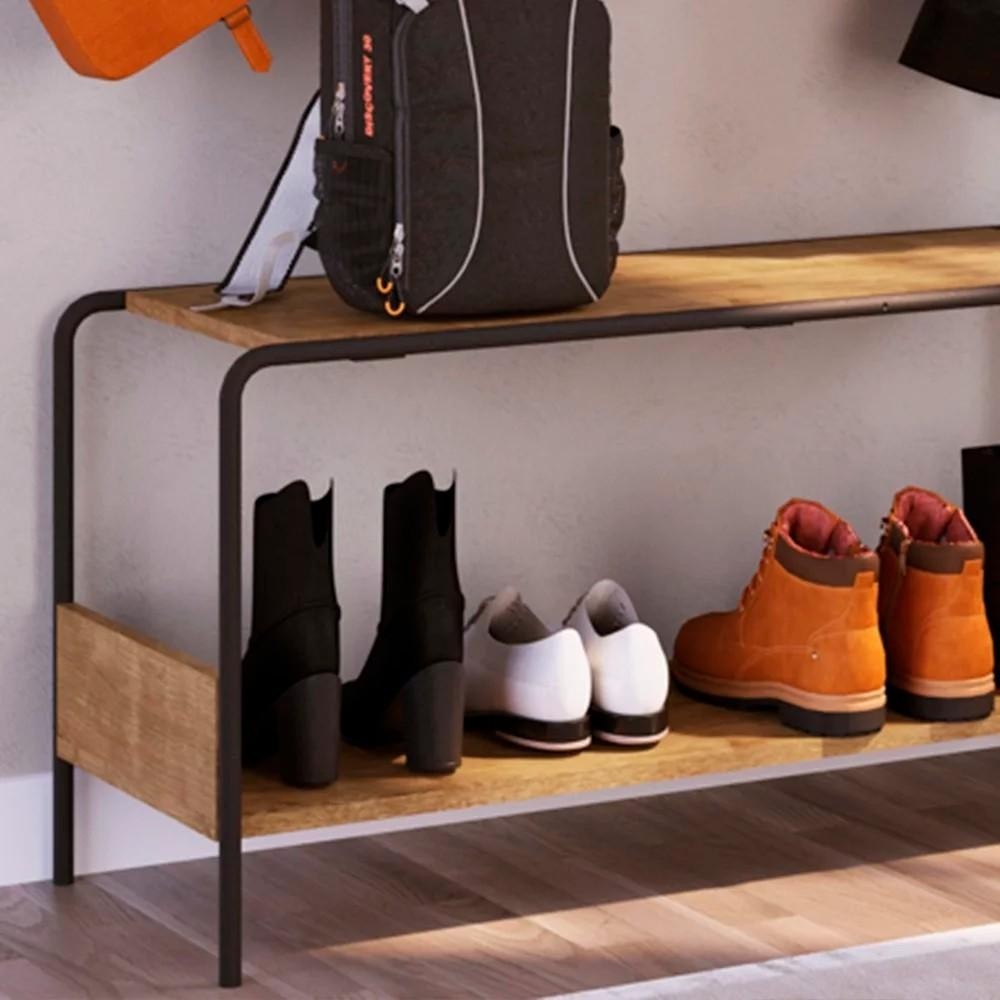Kit Prateleira Decorativa e Sapateira Banco Para Hall De Entrada Tube Vermont/Preto - Artesano