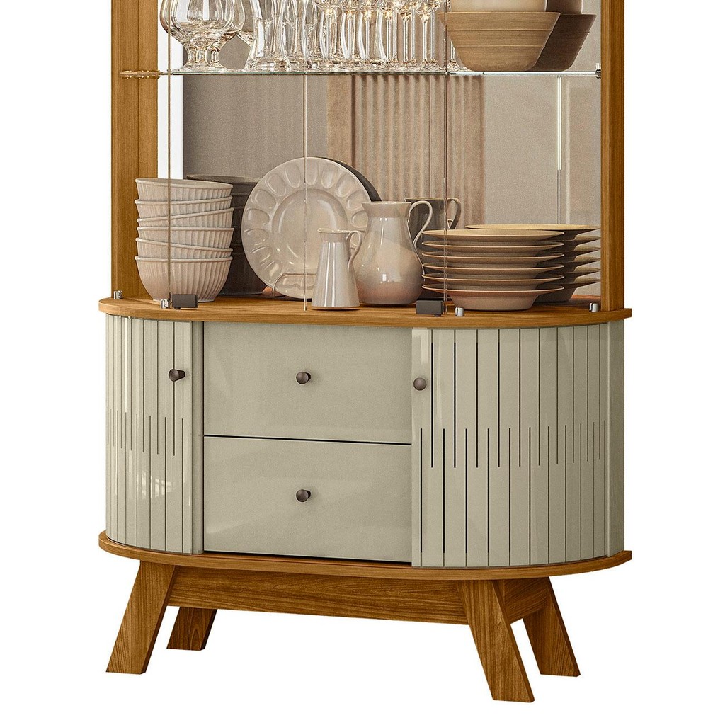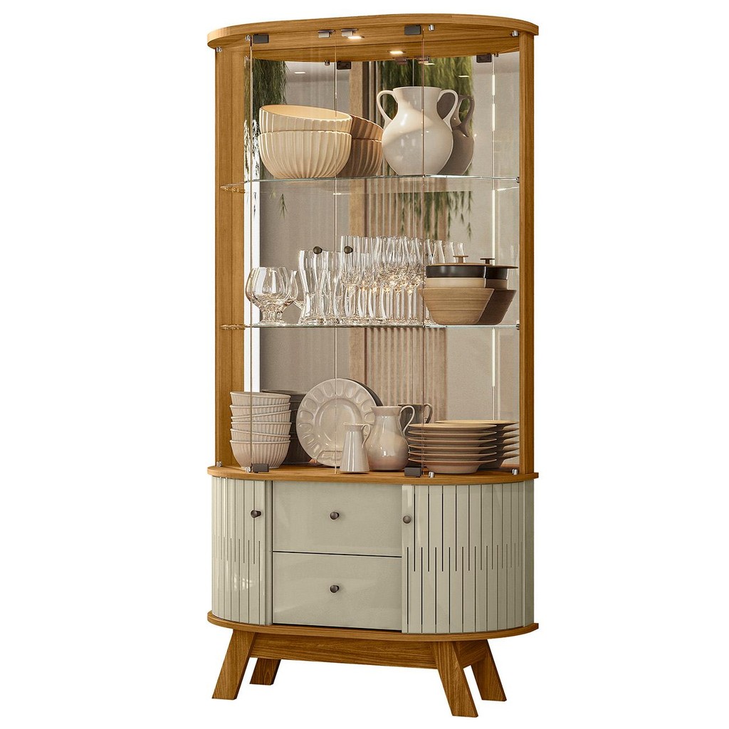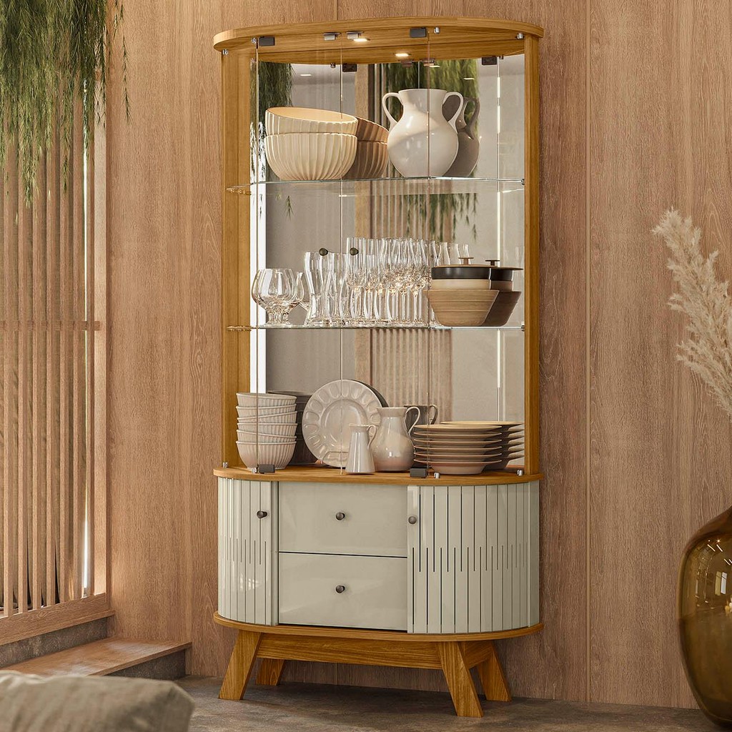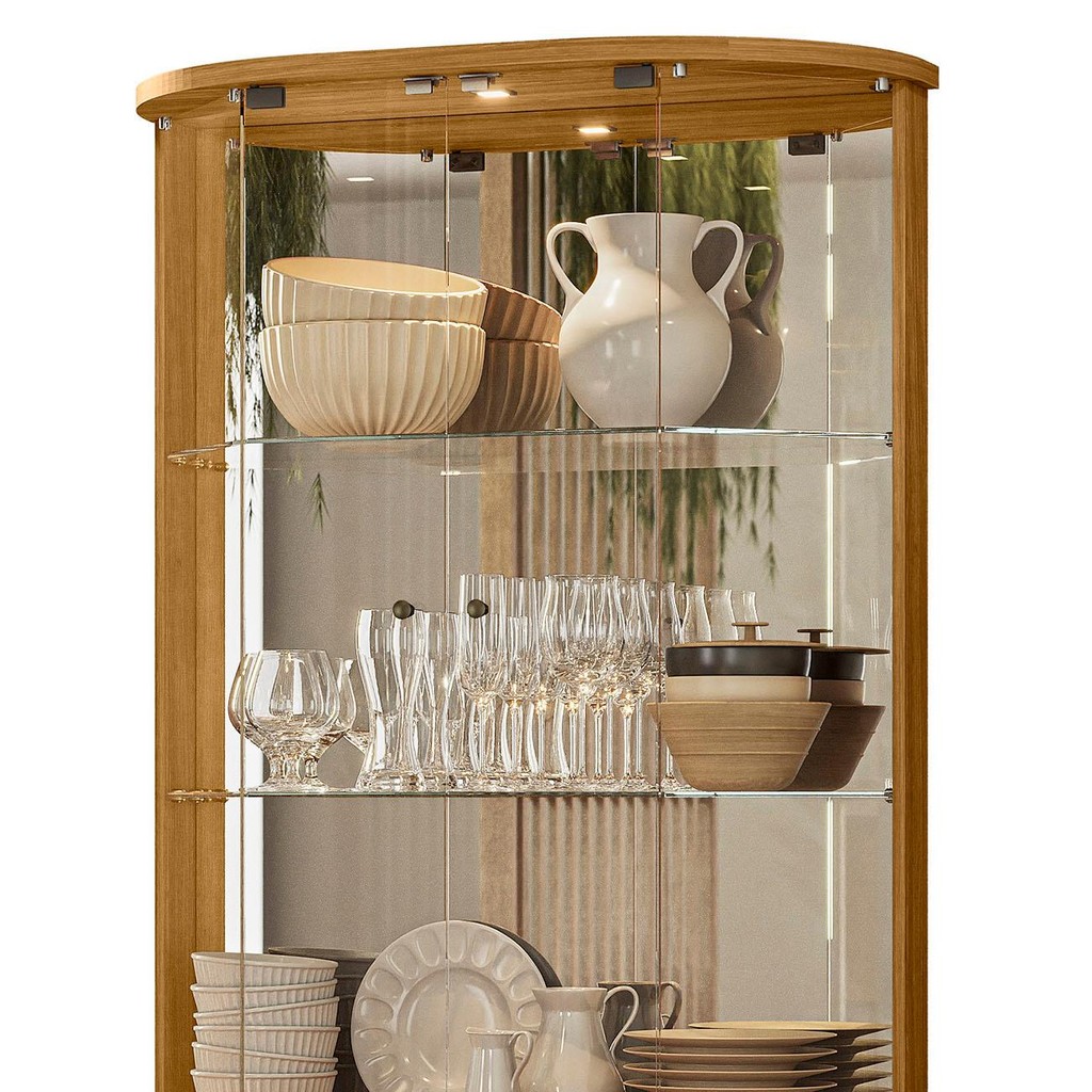 Cristaleira de Vidro Com LED Eva 90cm Z10 Cumaru/Opala - Mpozenato
