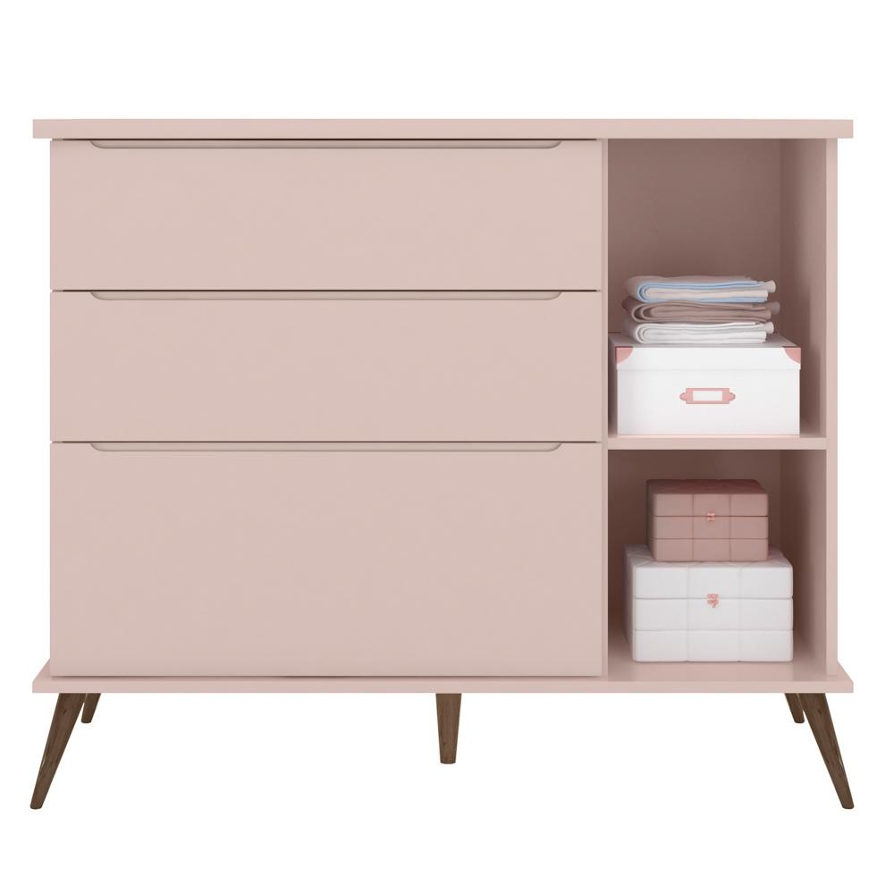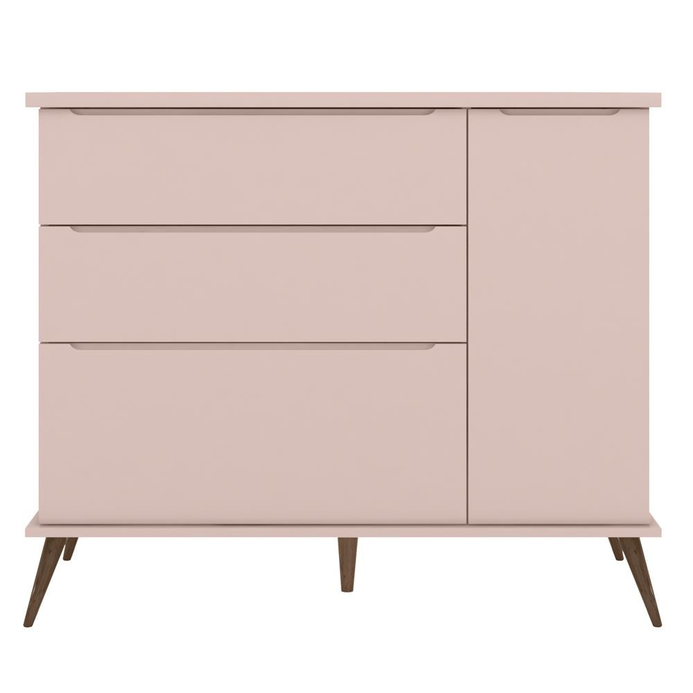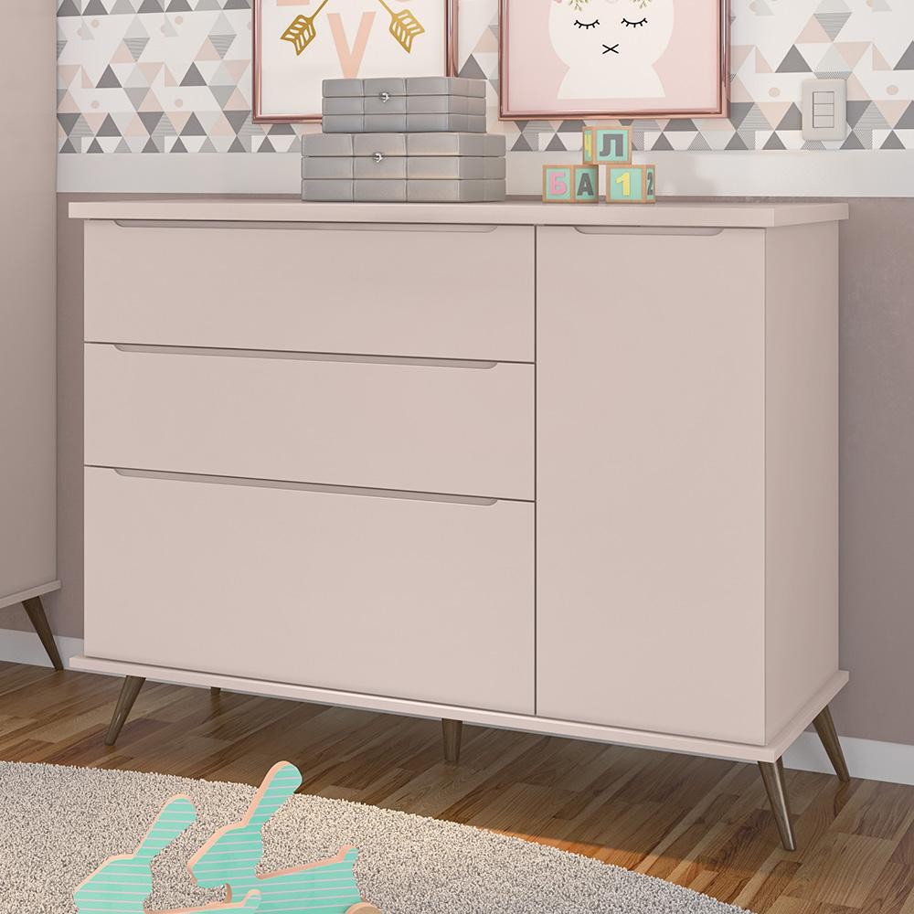 Cômoda Infantil 1 Porta 3 Gavetas 100% MDF Pés Retrô Mel P04 Rosê - Mpozenato