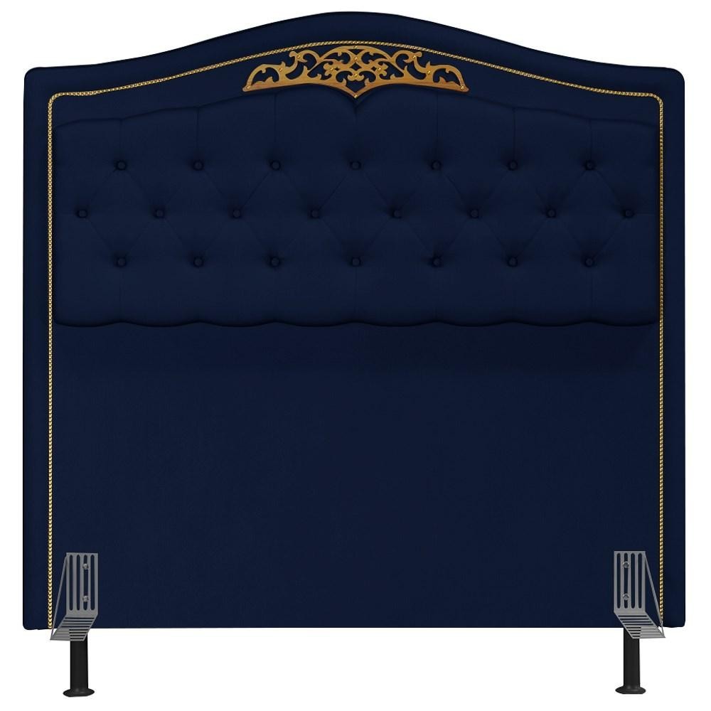 Cabeceira Cama Box Casal 140cm com Tachas Imperial Veludo J02 Azul - Mpozenato