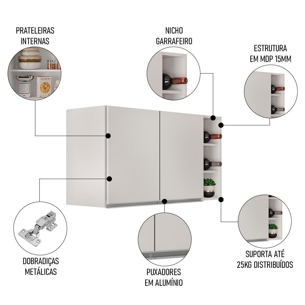 Armário de Cozinha Aéreo Califórnia 80cm e Nicho Garrafeiro 20cm Riad Branco - Lumil