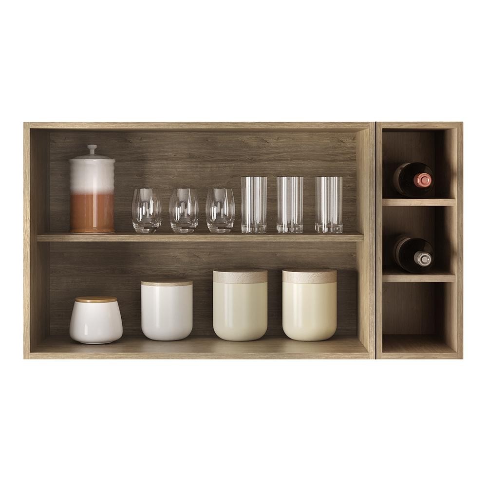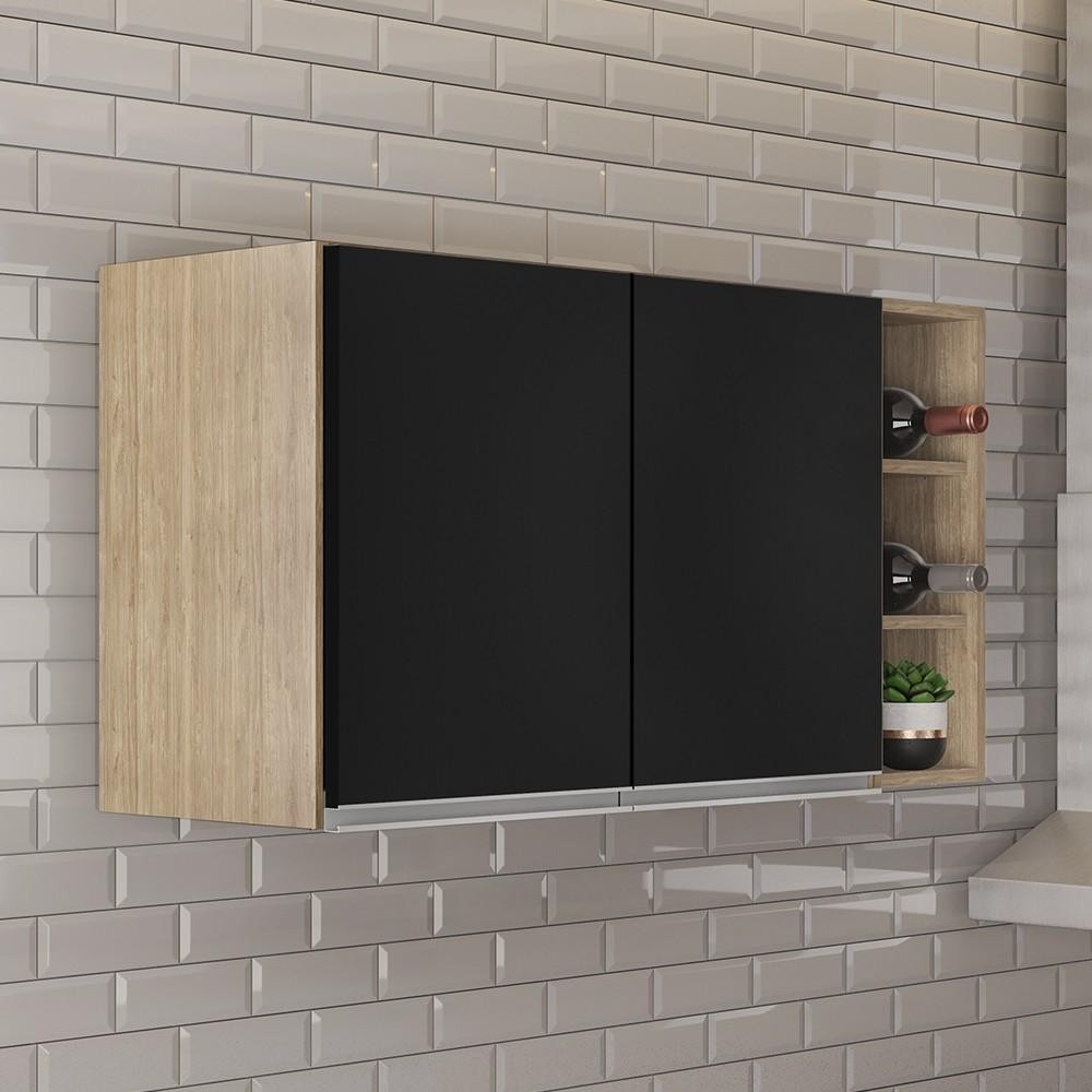 Armário de Cozinha Aéreo Califórnia 80cm e Nicho Garrafeiro 20cm Riad Castanho/Preto - Lumil