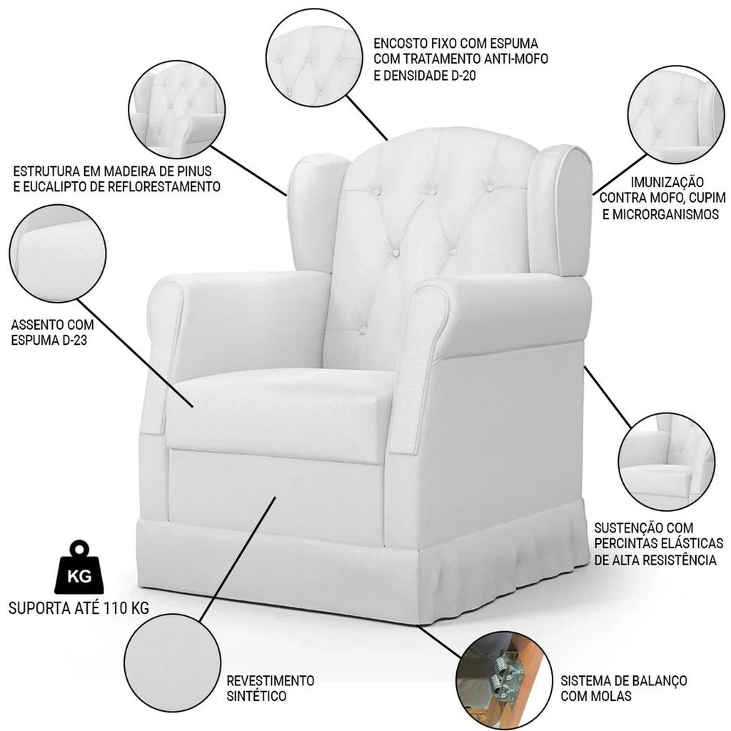 Poltrona de Amamentação e Descanso com Balanço e Puff Lucy P04 Sintético Branco - Mpozenato