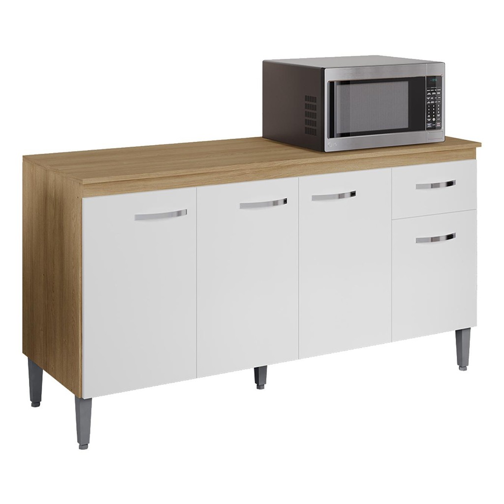 Balcão de Cozinha com Tampo 150cm Gabriela Amêndoa/Branco - AJL Móveis