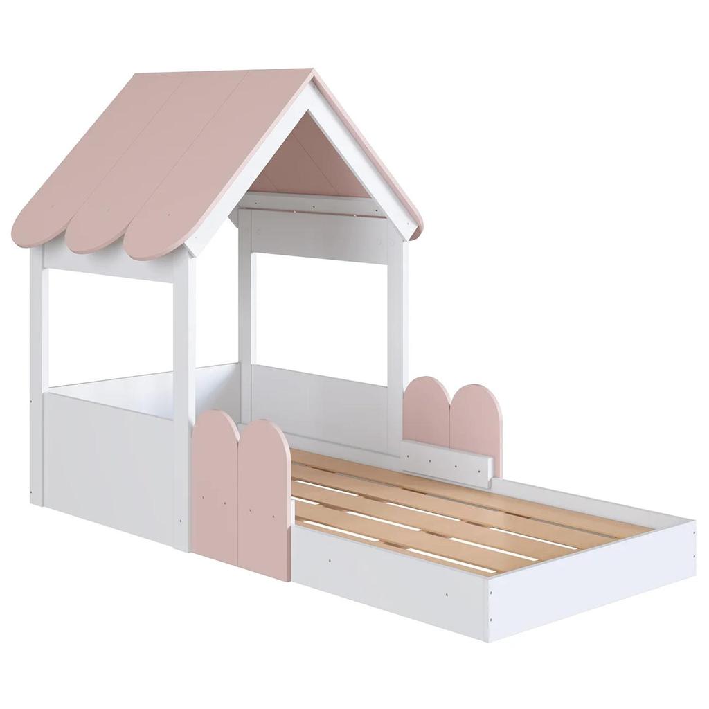 Cama Solteiro Infantil Montessoriana Casinha Nana Branco/Rosa C06 - Mpozenato