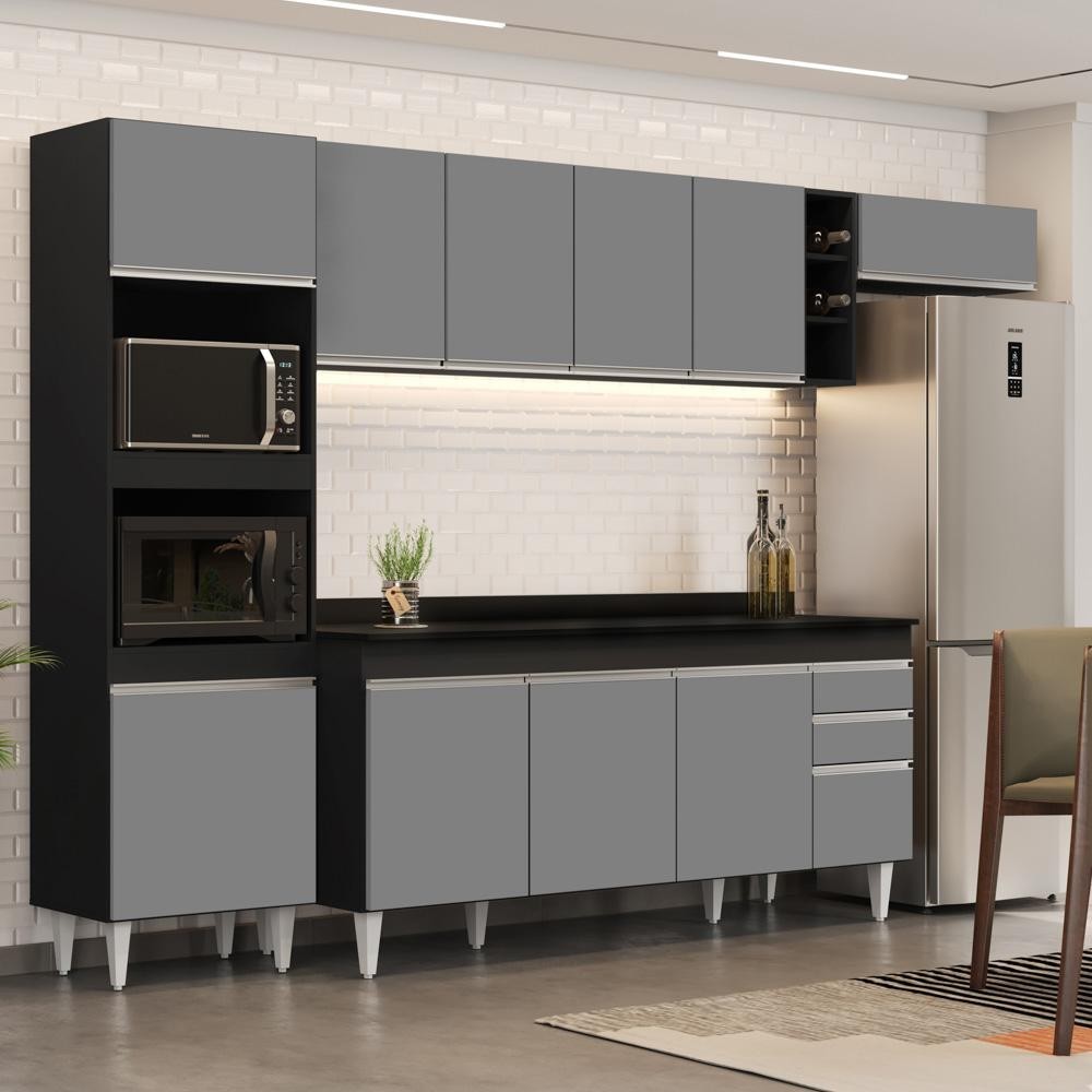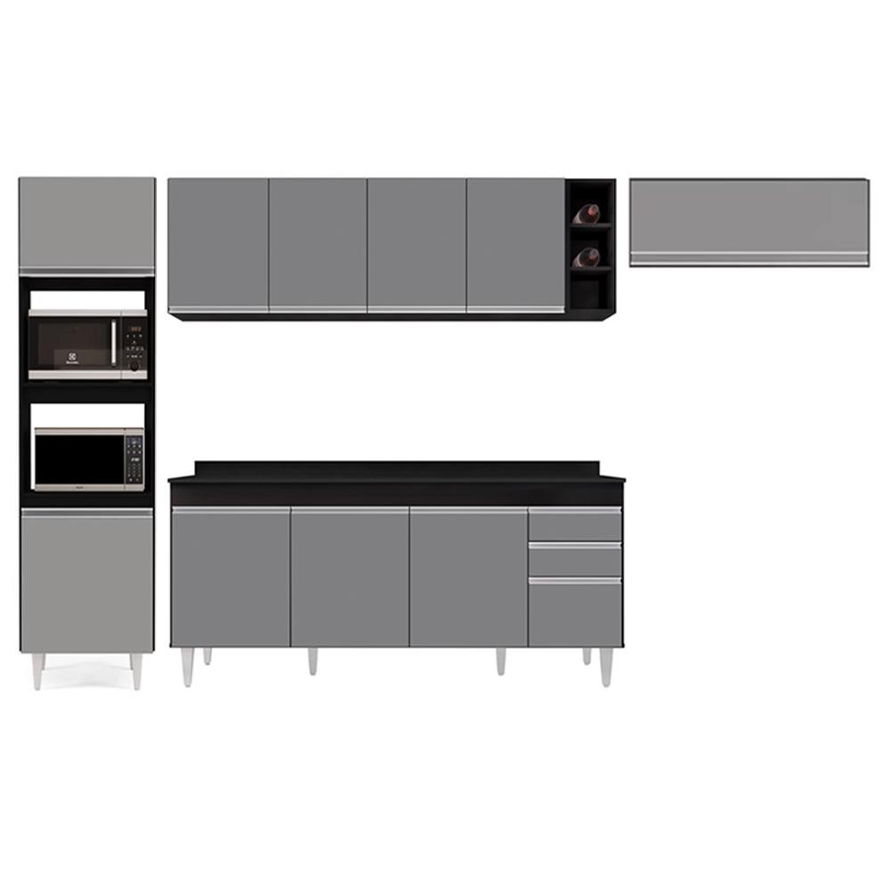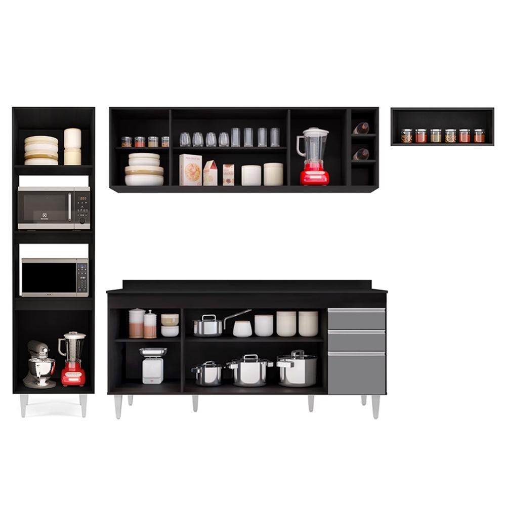 Armário de Cozinha Modulada 5 Peças CP17 Balcão com Tampo Preto/Cinza - Lumil
