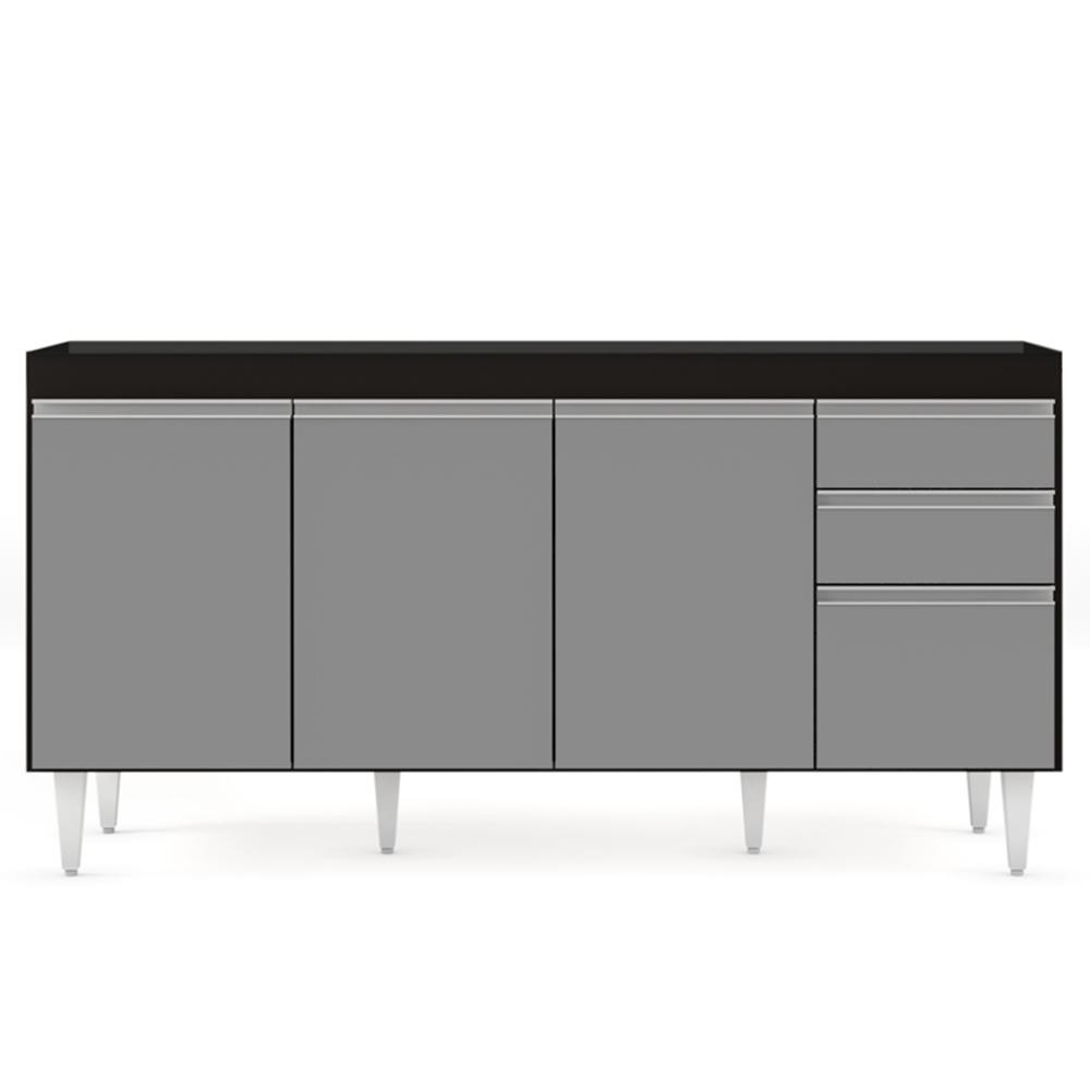 Balcão Gabinete 160cm Sem Tampo 4 Portas 2 Gavetas Arkansas Preto/Cinza - Lumil Móveis