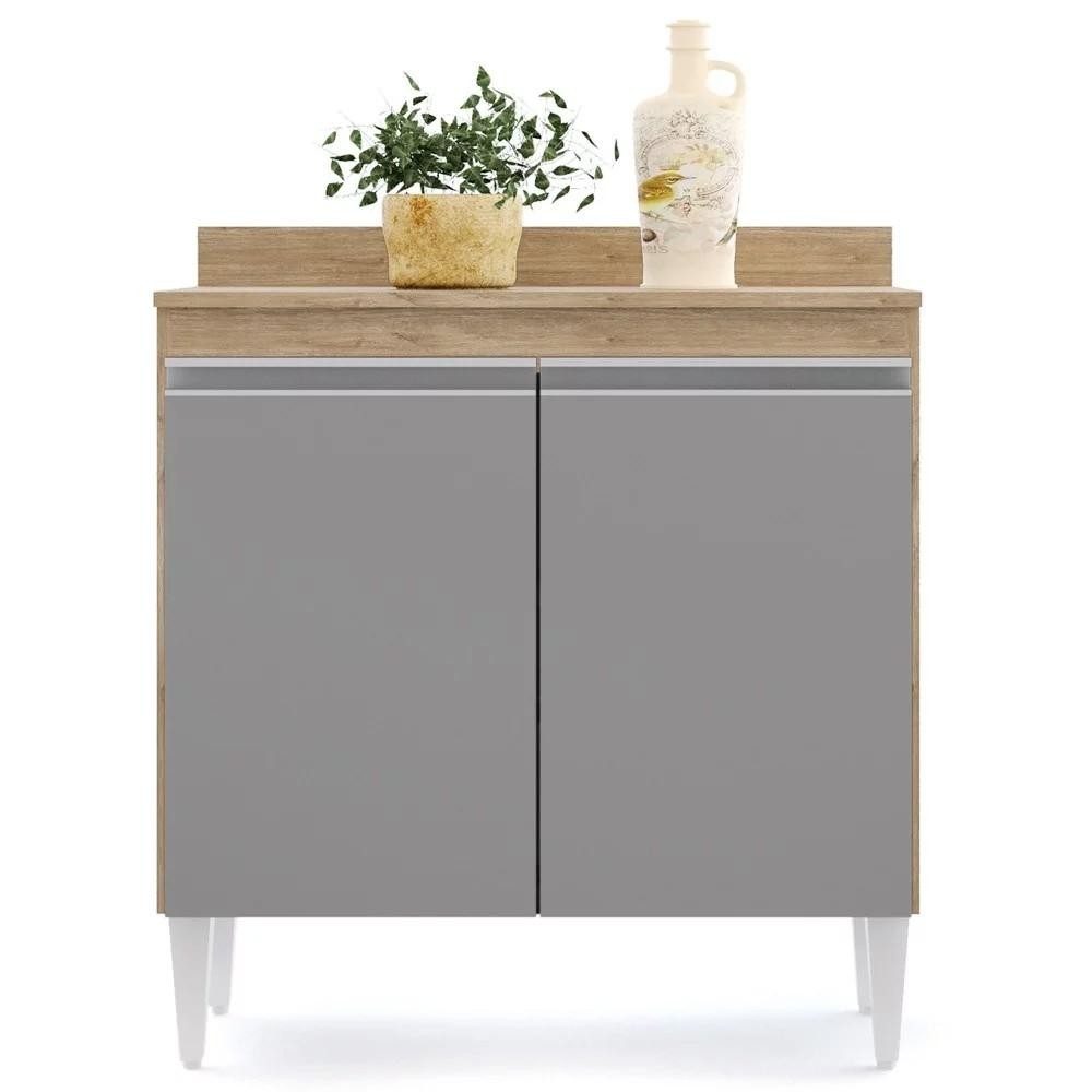 Balcão Gabinete 80cm 2 Portas Hawai Castanho/Cinza - Lumil Móveis