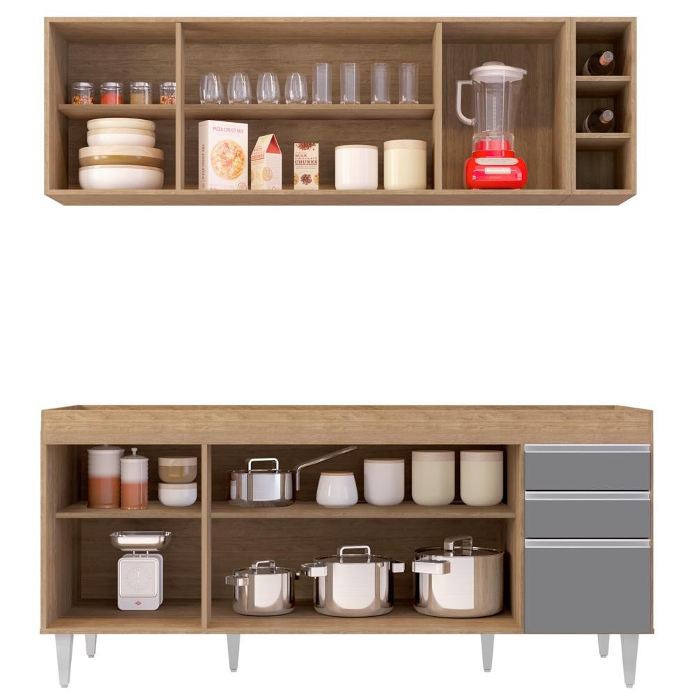 Armário de Cozinha Nevada e Balcão Para Pia 180cm Dallas Cast/Cinza - Lumil