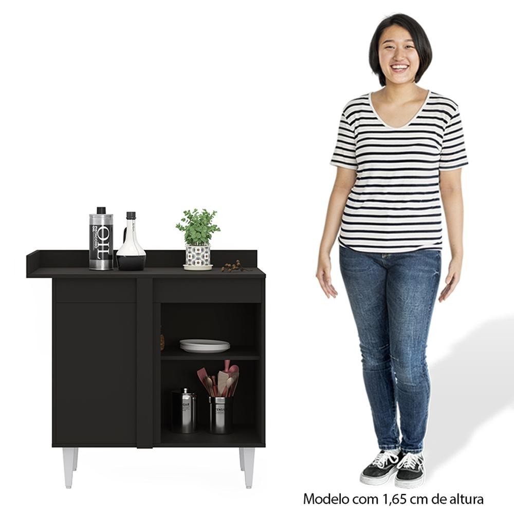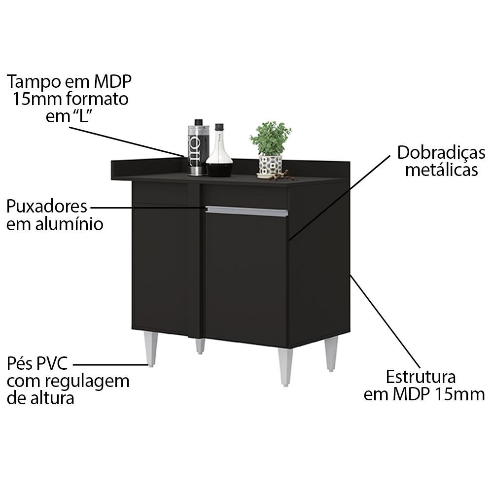 Balcão de Canto Reto com Tampo 1 Porta Denver Preto - Lumil