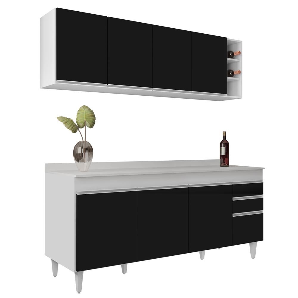 Armário Nevada e Balcão 180cm com Tampo Dallas Branco/Preto - Lumil