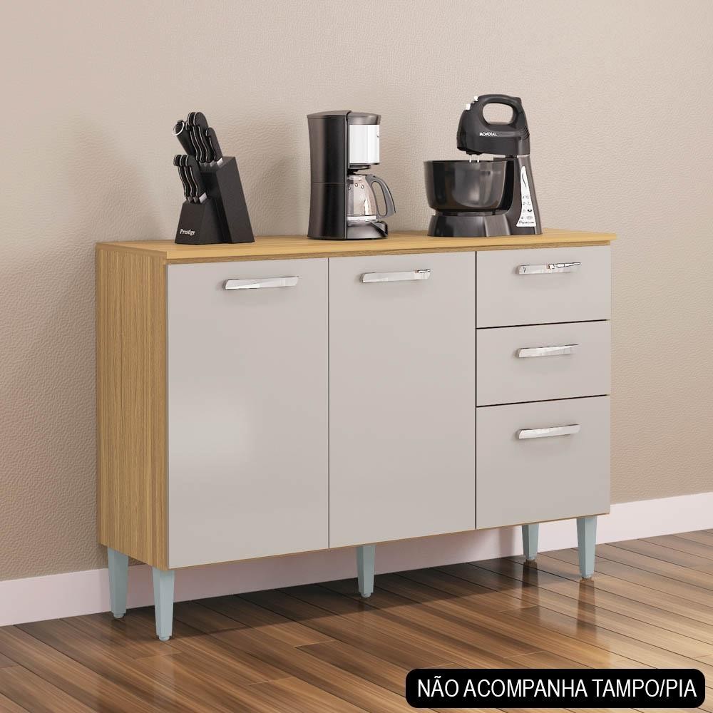 Balcão de Cozinha para Pia 120cm 3 Portas 2 Gavetas Livy P11 Damasco/Off White - Mpozenato