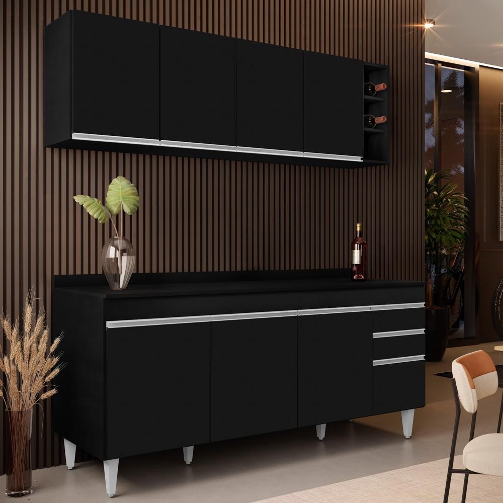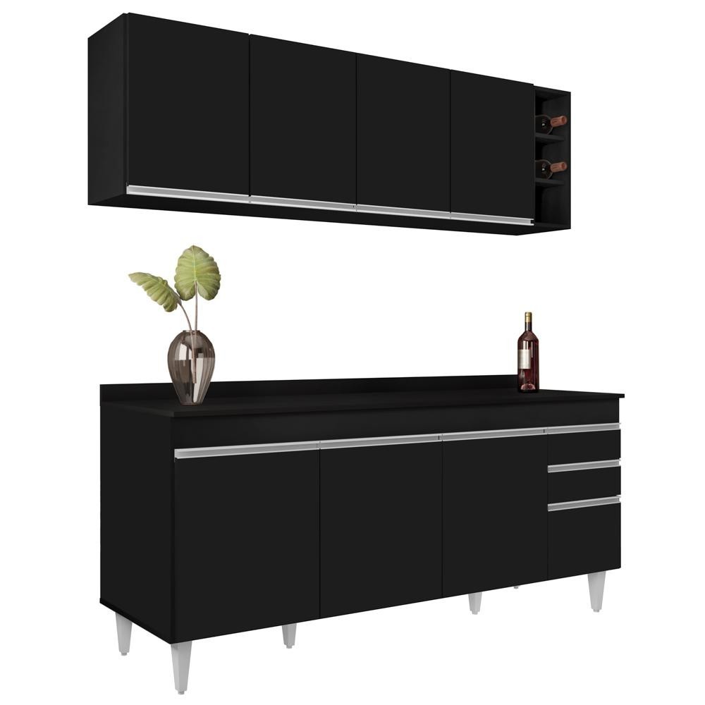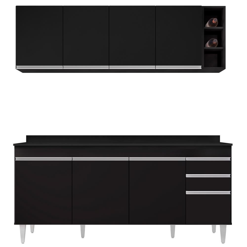 Armário Nevada e Balcão 180cm com Tampo Dallas Preto - Lumil