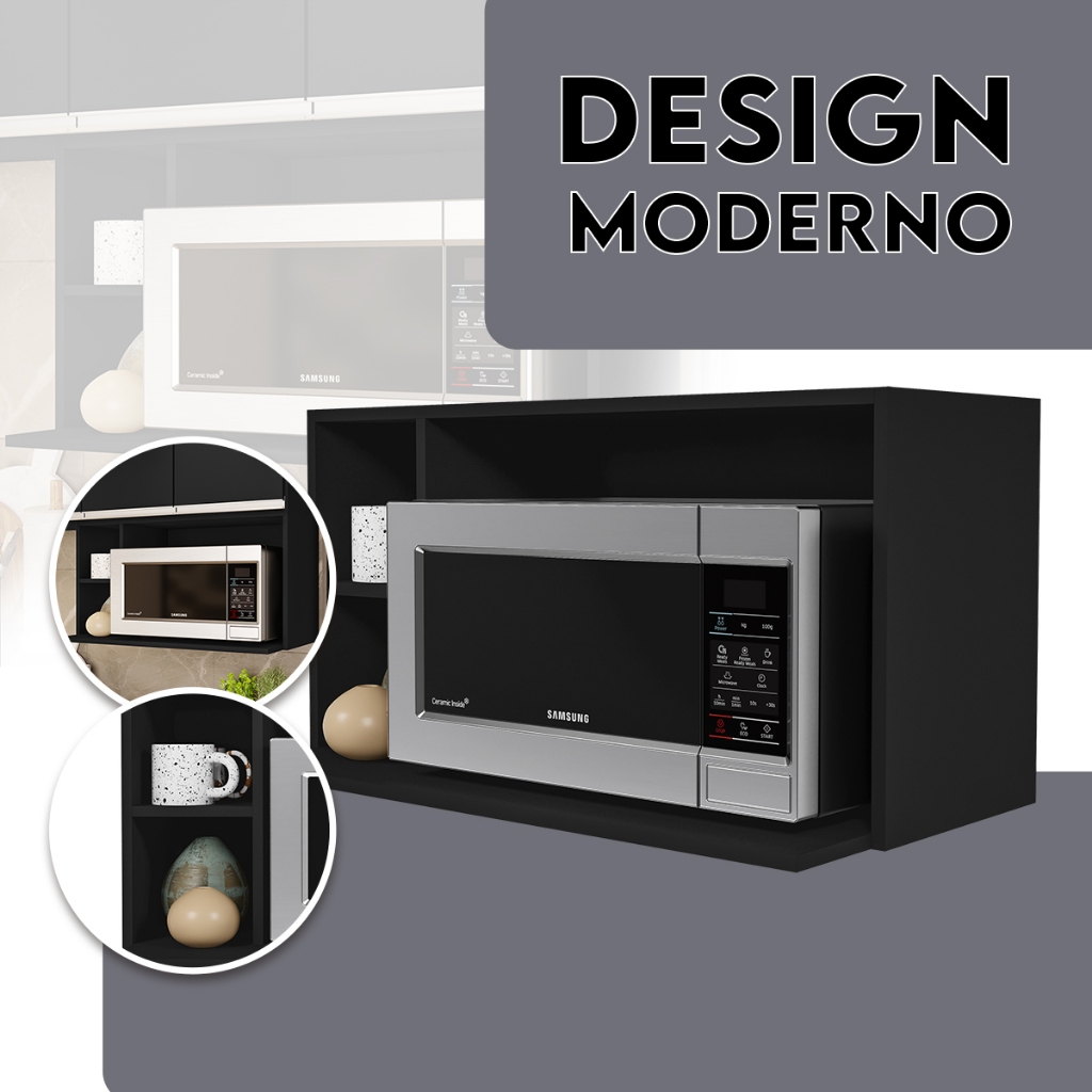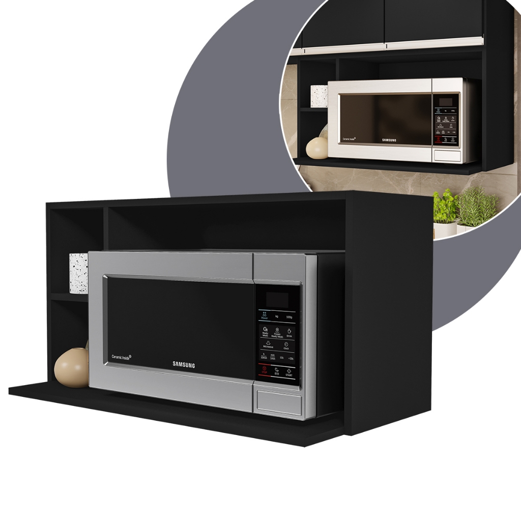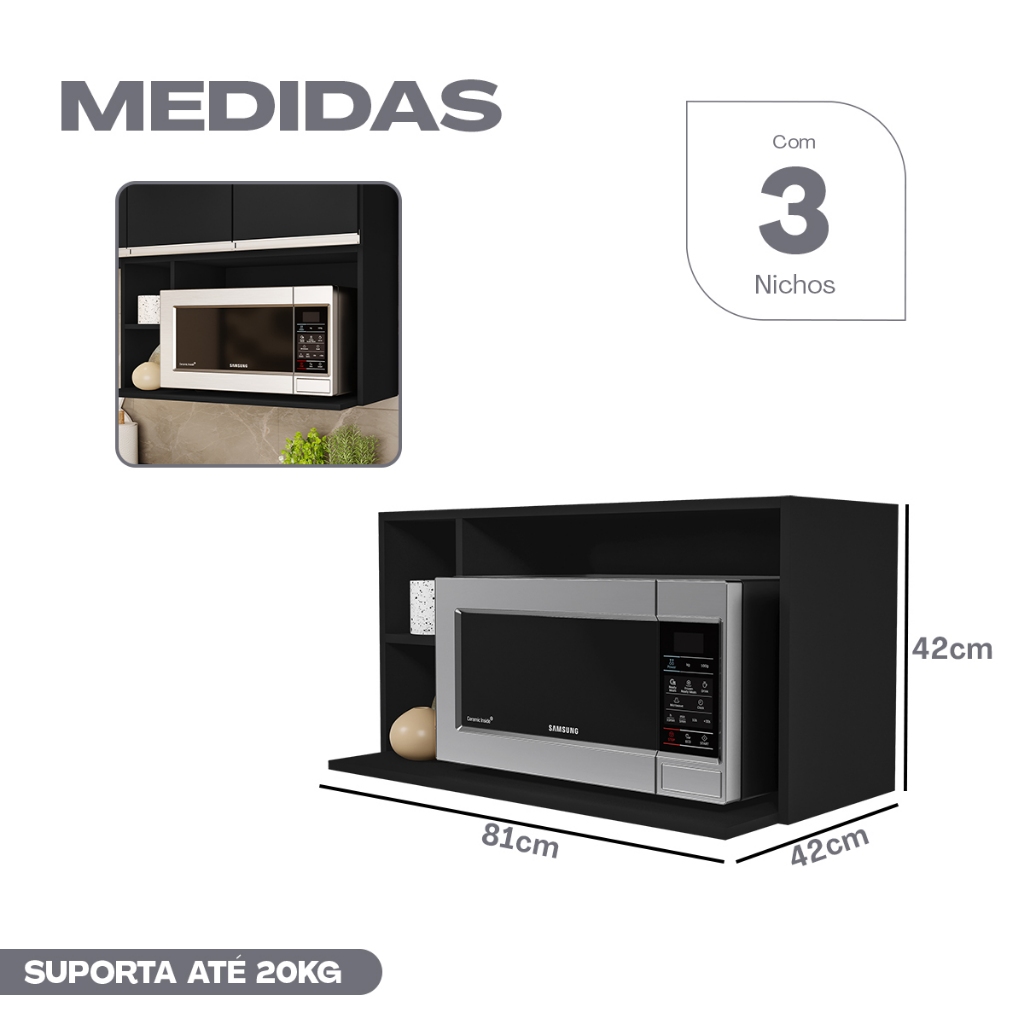 Suporte Microondas Aéreo 81cm com Nicho Adega Miami Preto - Lumil