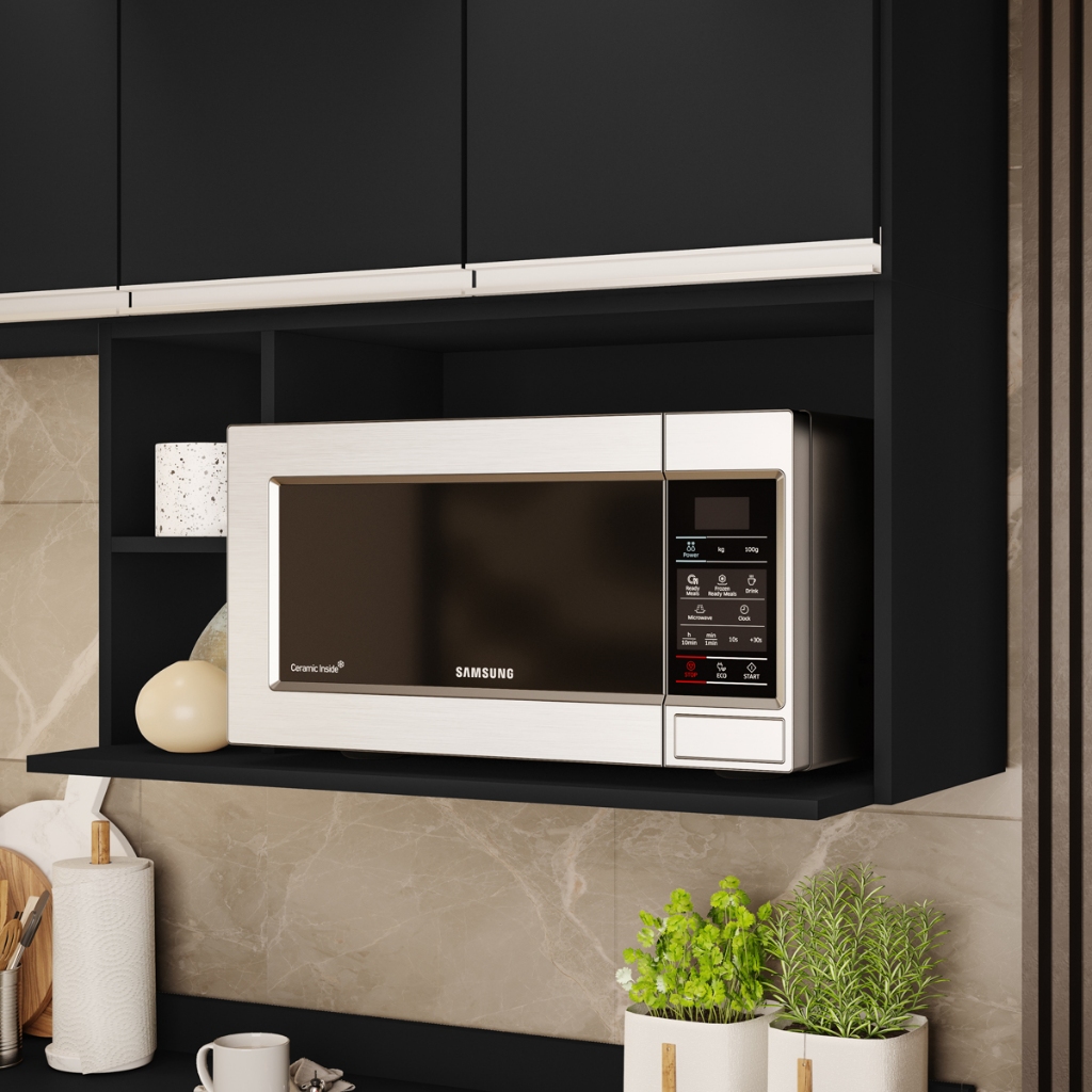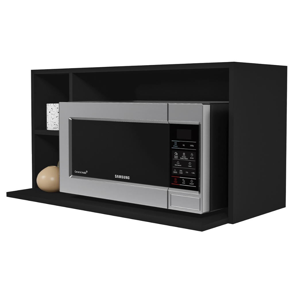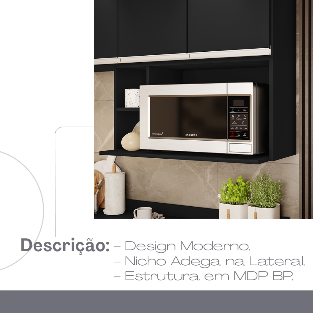 Suporte Microondas Aéreo 81cm com Nicho Adega Miami Preto - Lumil