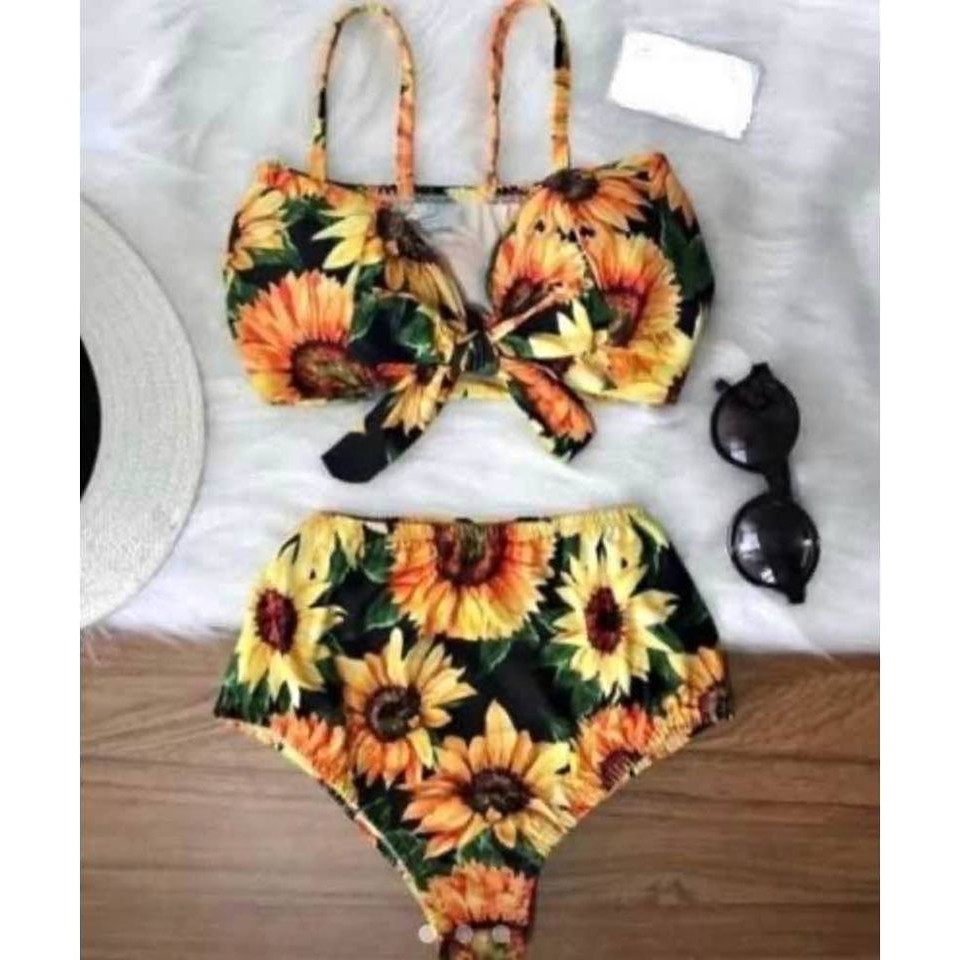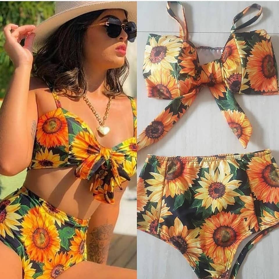 Biquíni Girassol De Amarração Cintura Alta Hot Pants