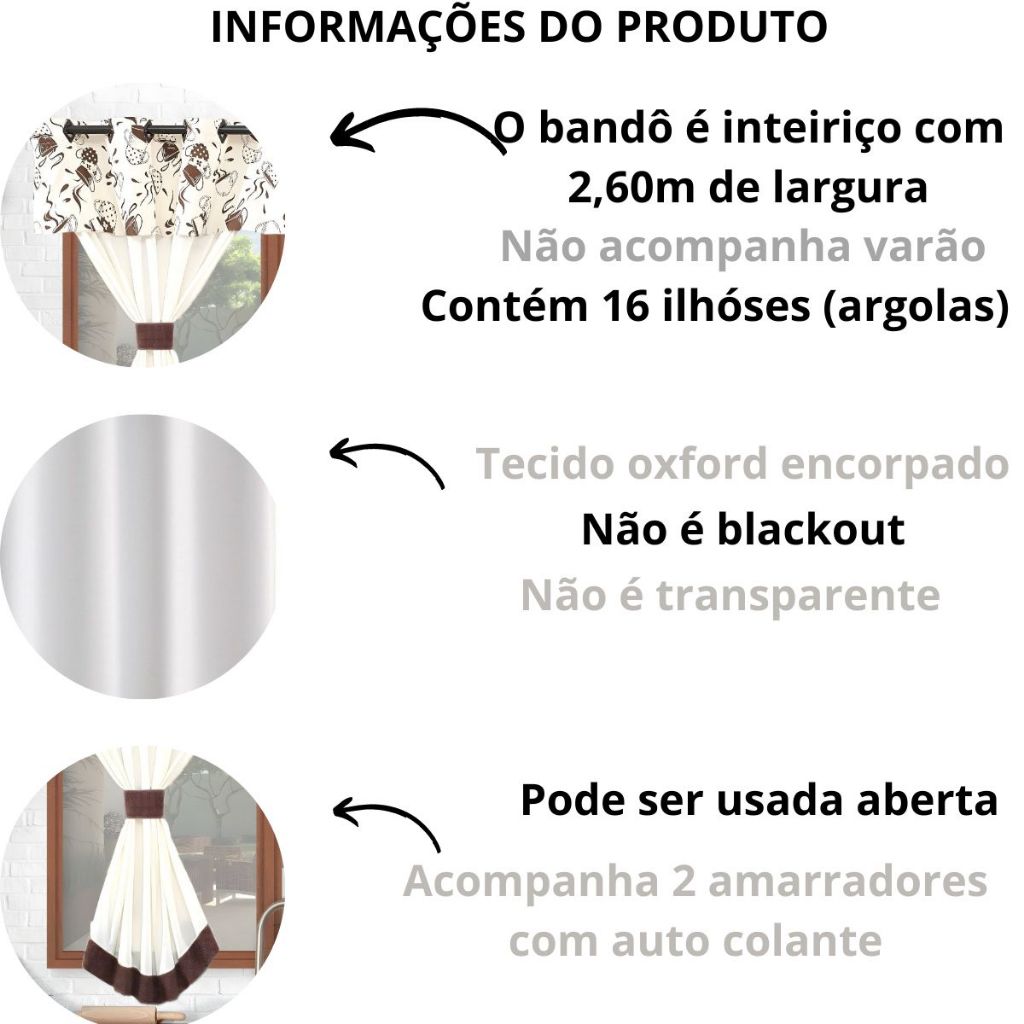 Cortina De Cozinha / gourmet e Copa 2,60m X 1,40m Para Varão Simples bege / Marrom
