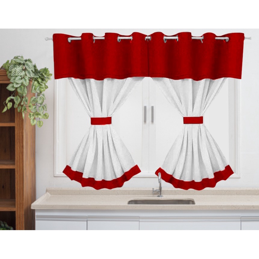 Cortina Moderna Cozinha Janela Casa 2,00m X 1,20m Para Varão Simples Tecido liso Bandô vermelho