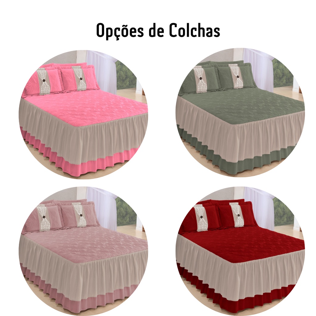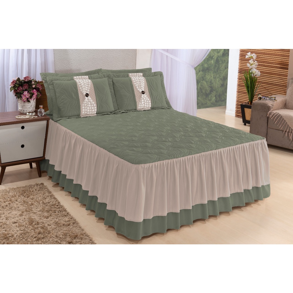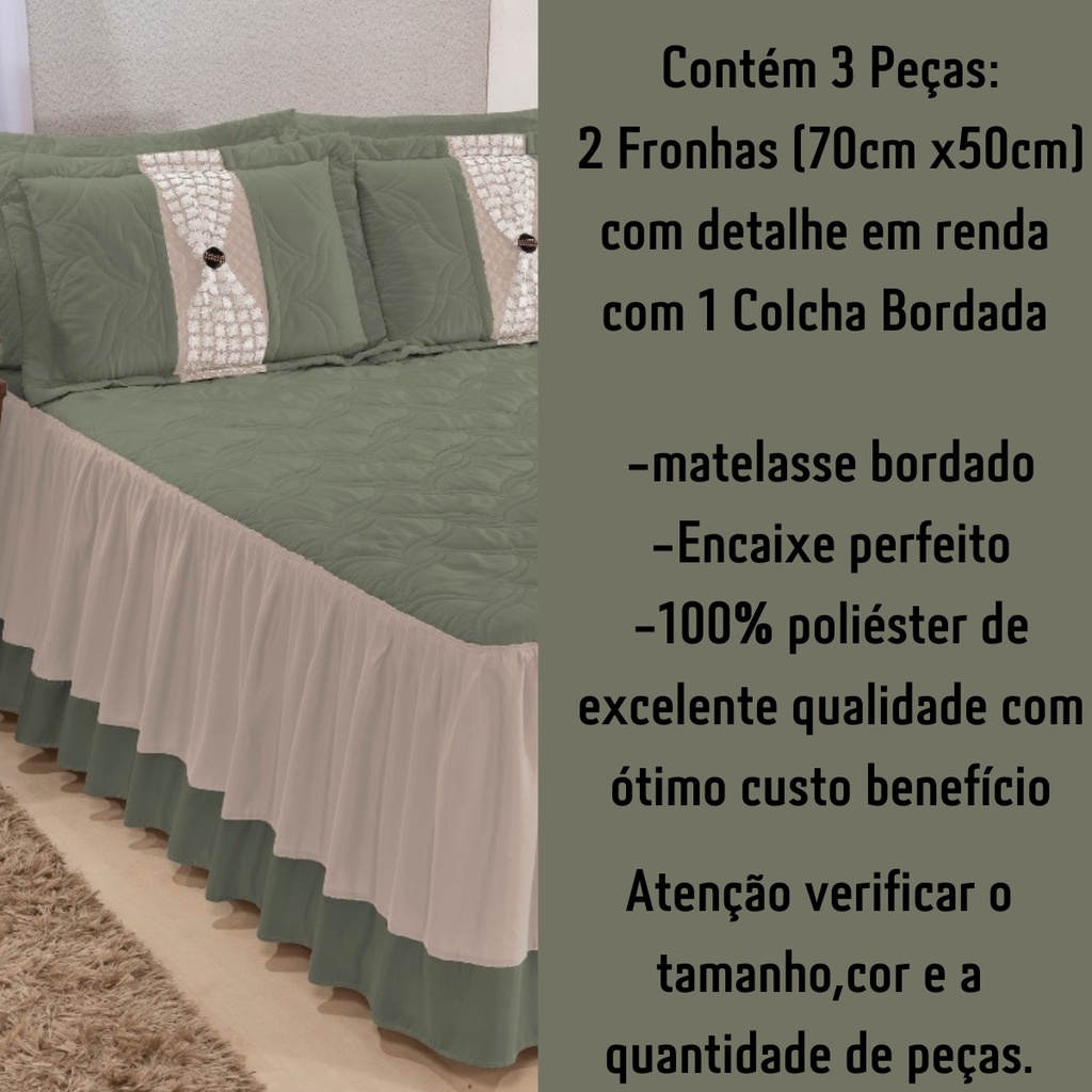 Colcha Casal Queen Kit Bordada 2,70 X 2,60 Cama Box Cor Verde Malva