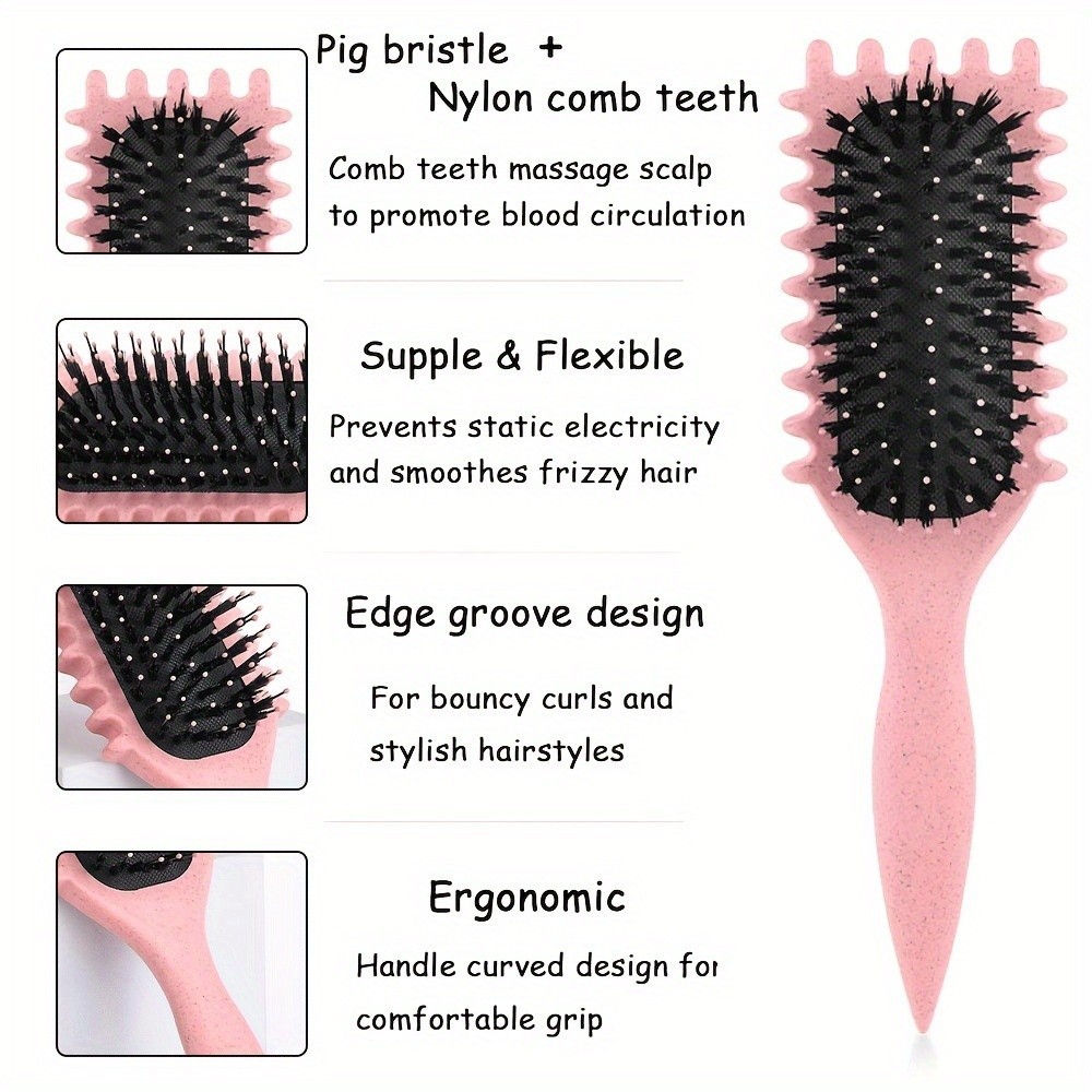 1 Escova De Ondulação Cerdas De Javali Pontas P/ Reduzir Puxar E Separar Cachos Perfeitos Onduladas Liso Cacheada Cabelo