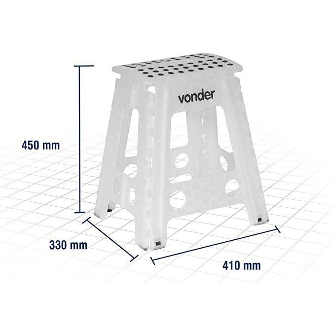 Banqueta Plástica Dobrável 3 cores Altura 450mm - Vonder