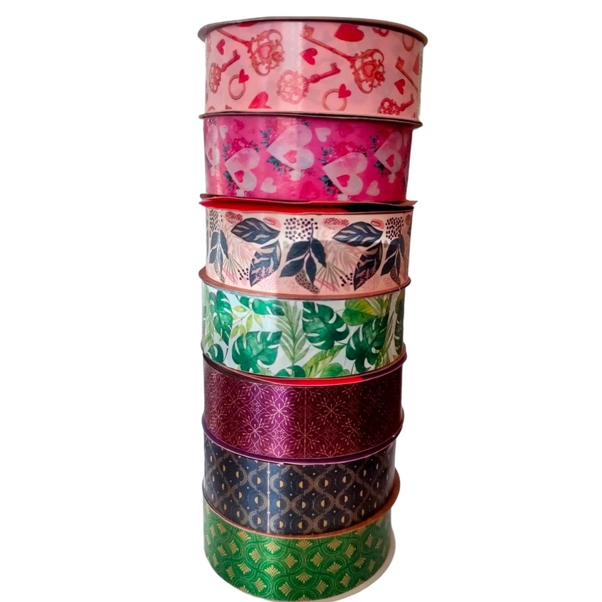 Rolo de Fita Plástica 30mmx30m Decorada Laço Decoração Lançamento Presente