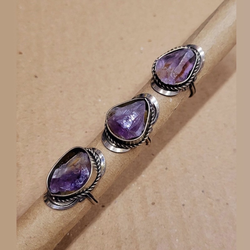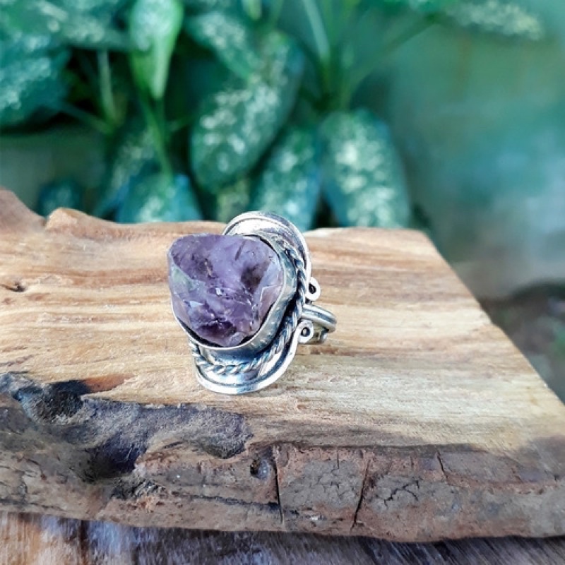 Anel Peruano Alpaca Cristal Ametista Anel Pedra Ametista Natural Ajustavel