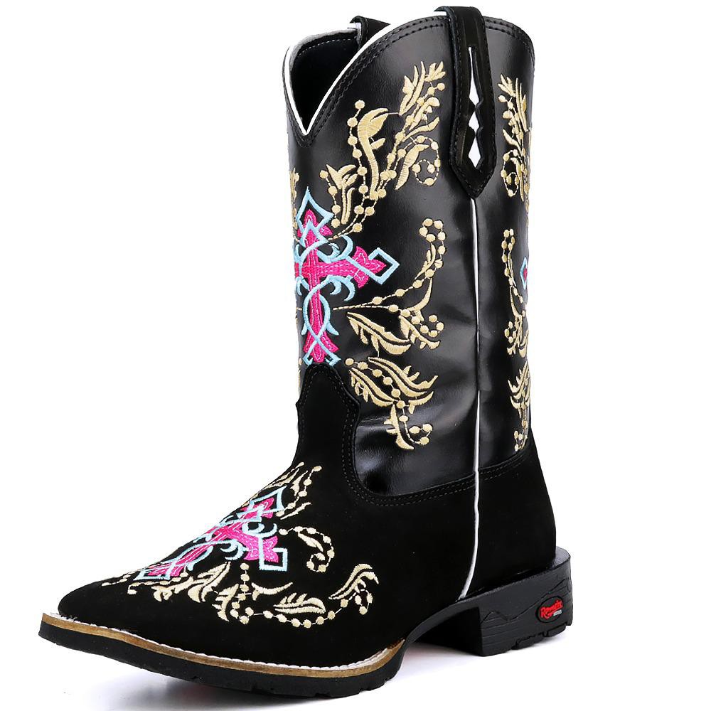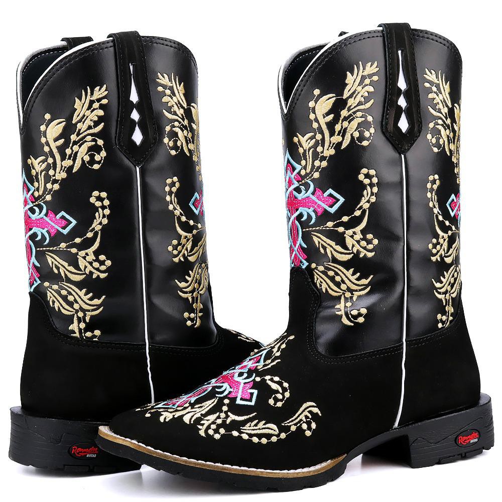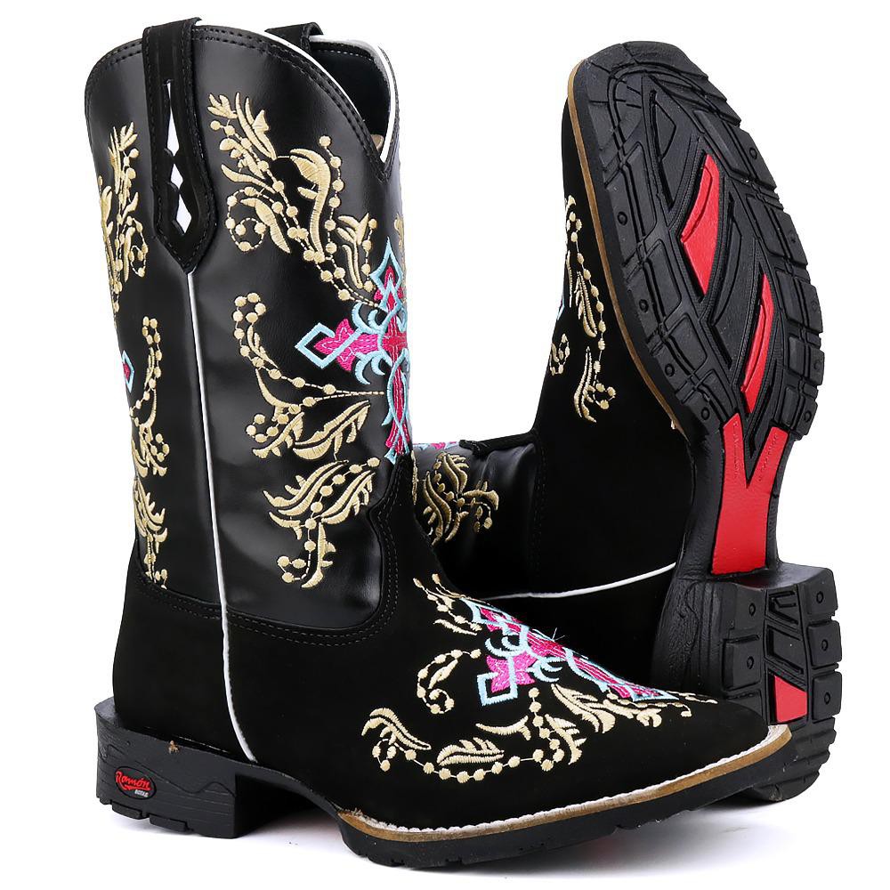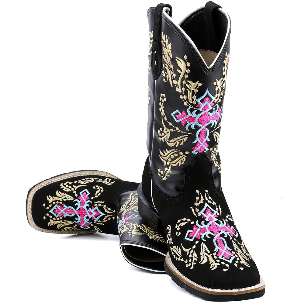 Bota Texana Feminina Bico Quadrado Confortavel Bordado Cruz Country