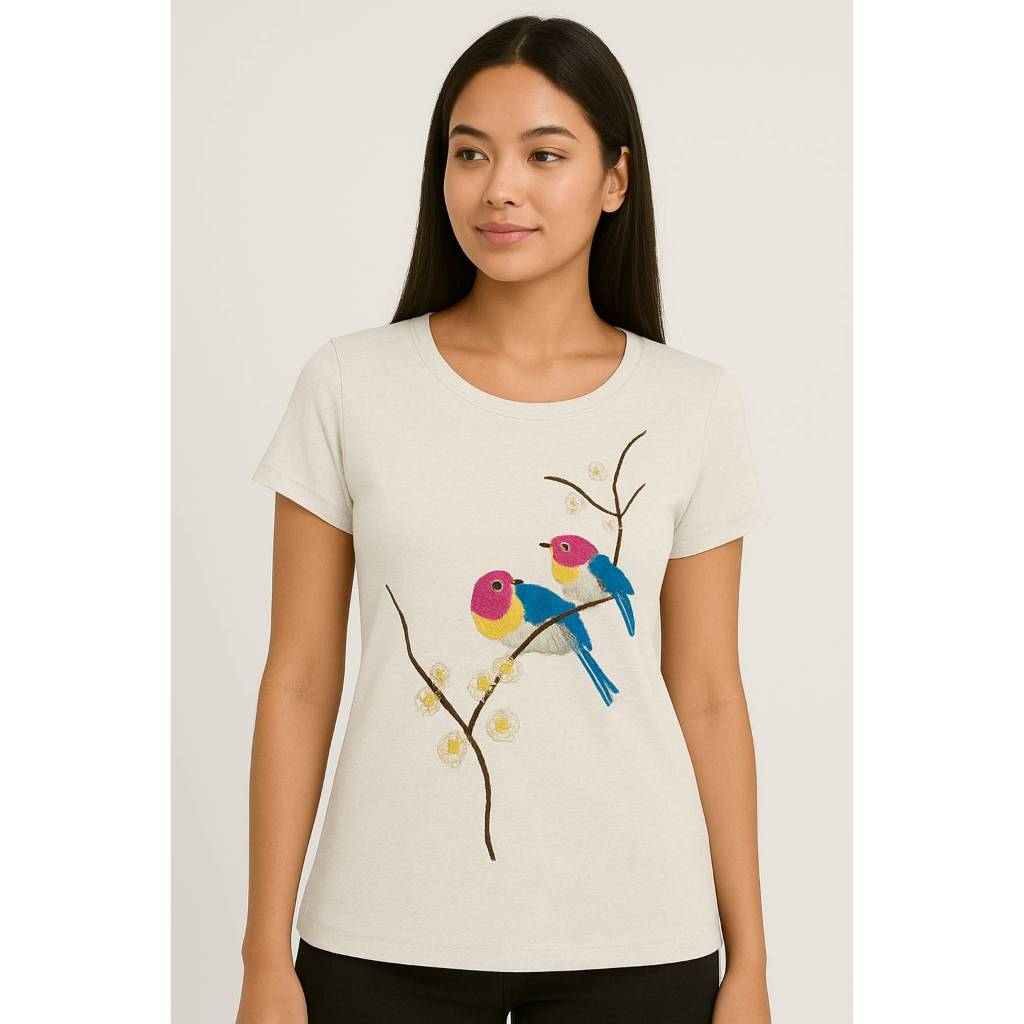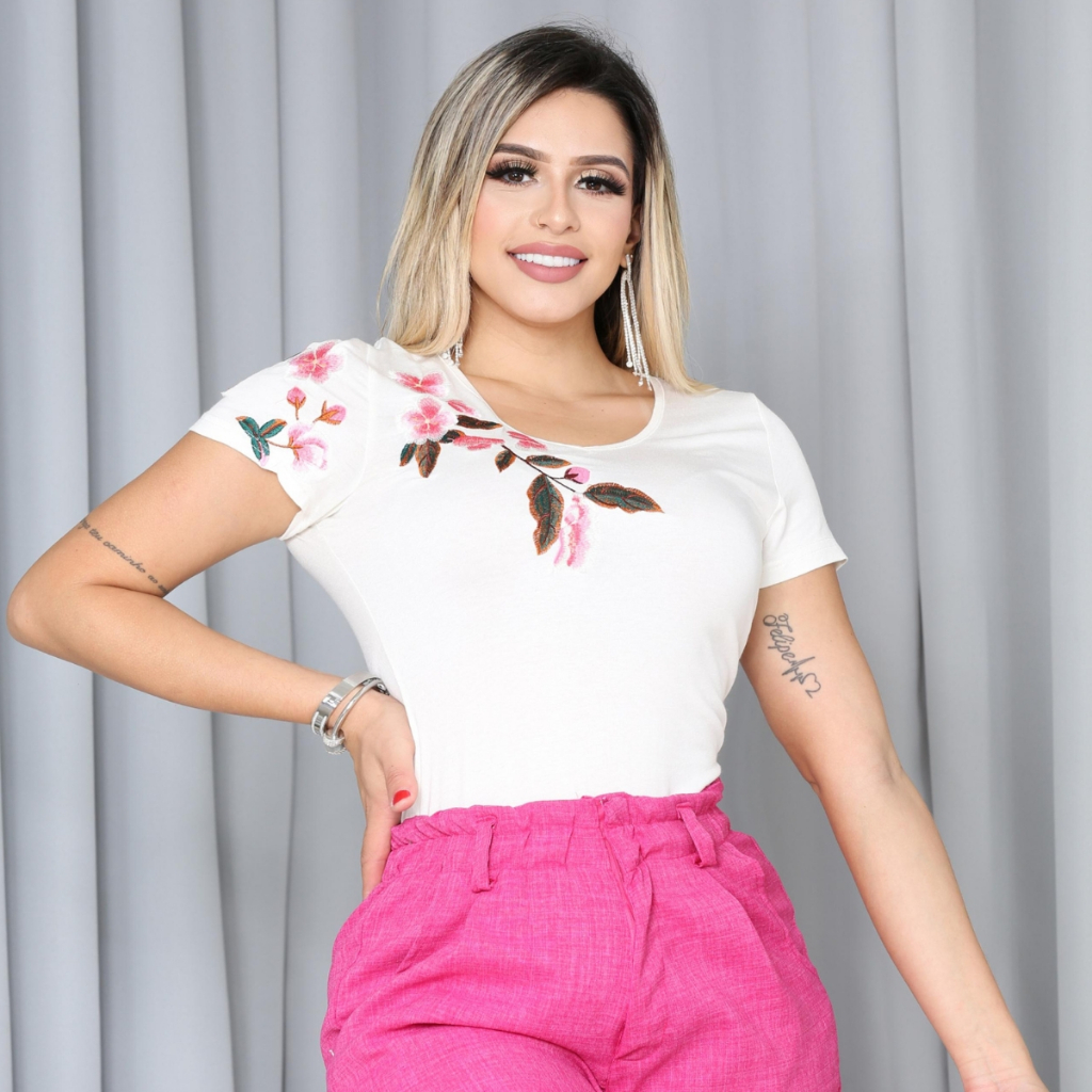 Blusa t shirt camiseta baby look feminina bordada estampa floral viscolycra algodão
