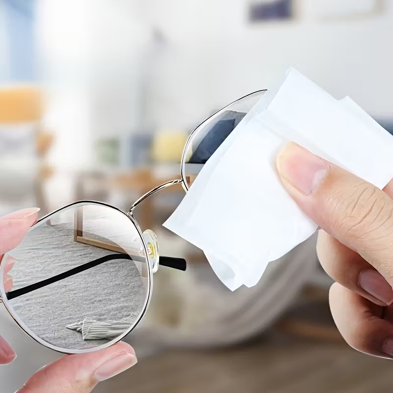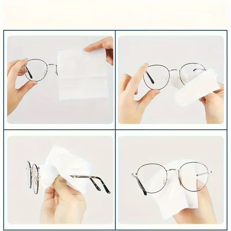 KIT 100 Lenços Umedecidos Antiembaçantes Adequados para Óculos e Telas Pacote Aleatório
