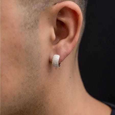 Brinco Prata 925 Argola Masculino Cravejado Zircônia Neymar Banhado Cor Prateado