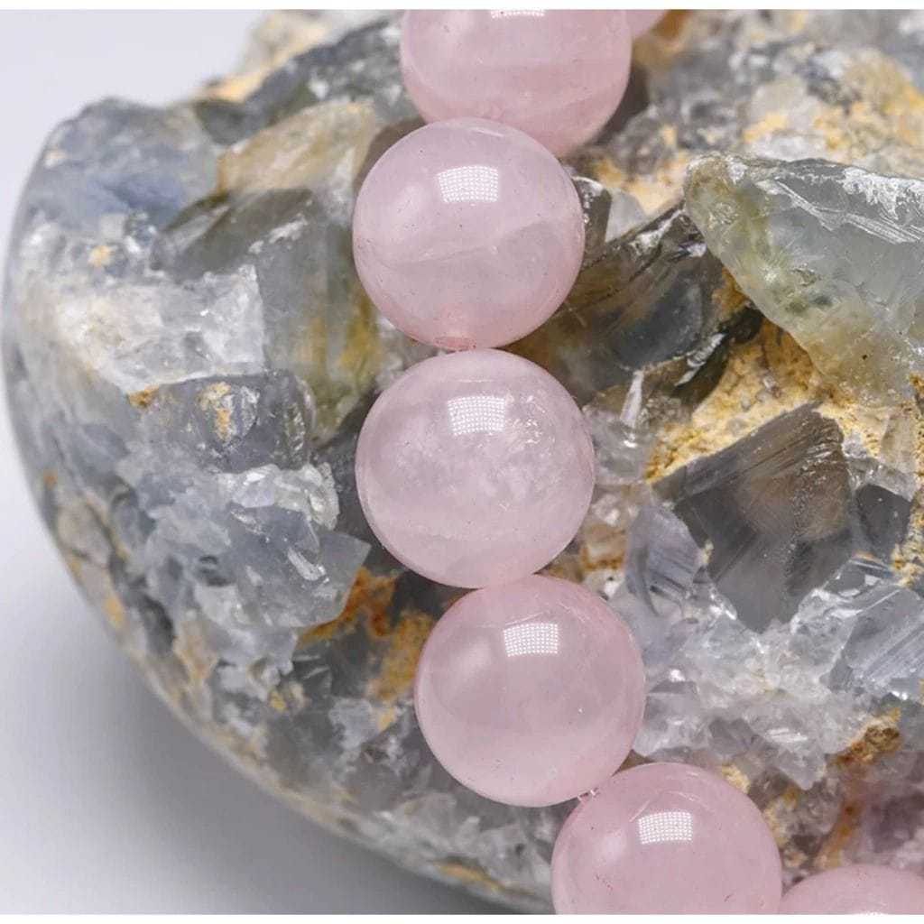 Pulseira De Pedra Quartzo Rosa Natural Esfera JOIA ENERGIA ESPIRITUAL Tamanho 8 Mm - Pedra Do Amor