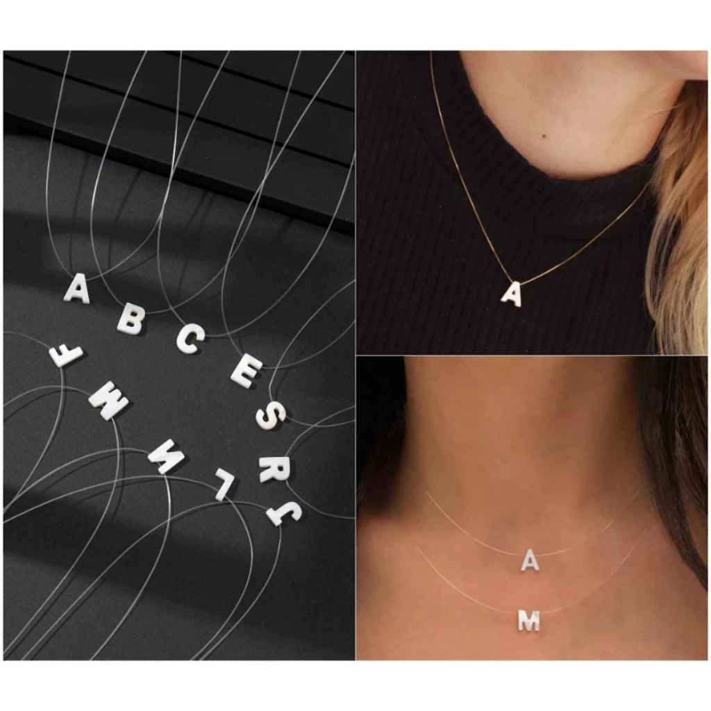 Colar Fio de Nylon com Pingente de Letra Inicial | 40cm + 5cm Extensor | Garantia 1 Ano | Embalagem para Presente