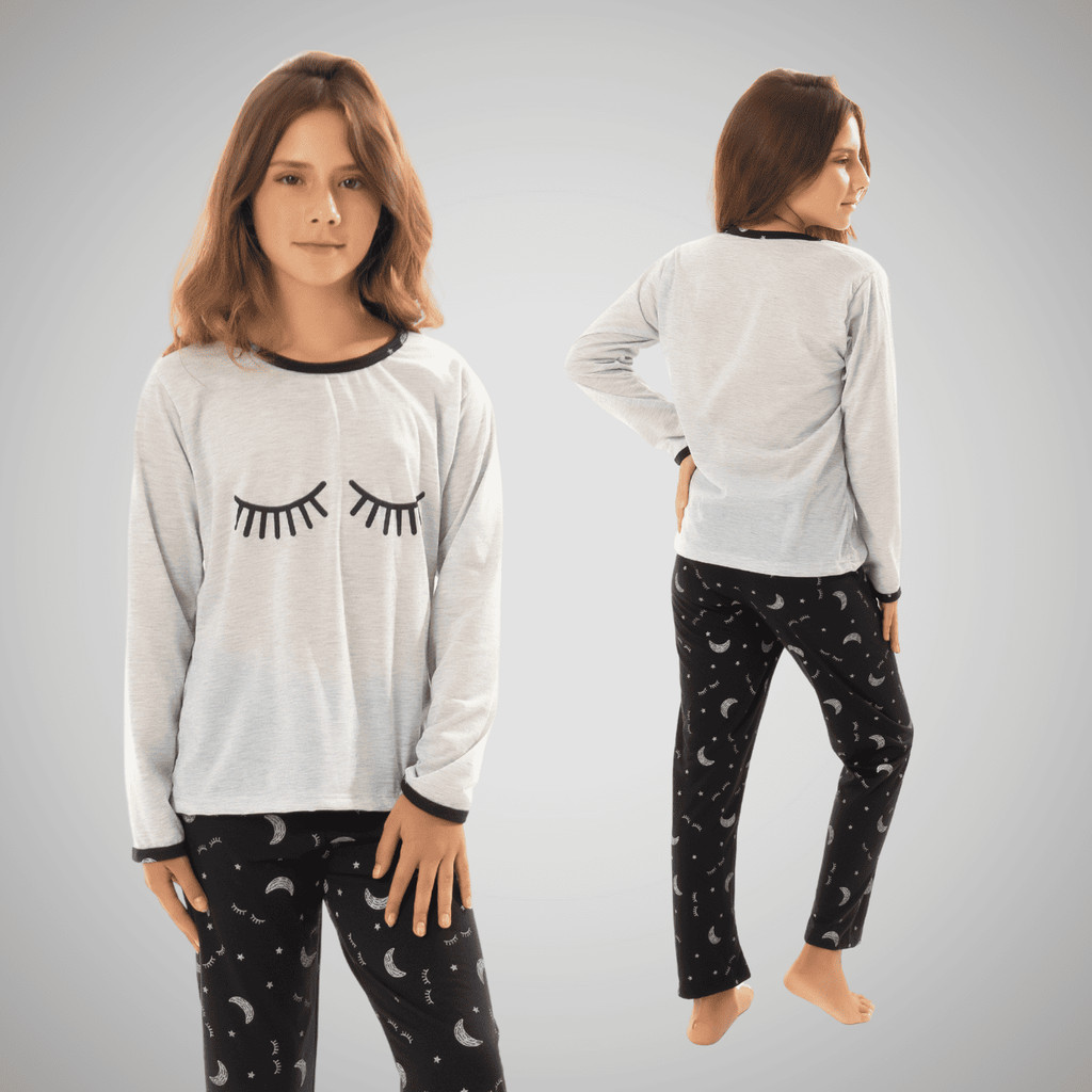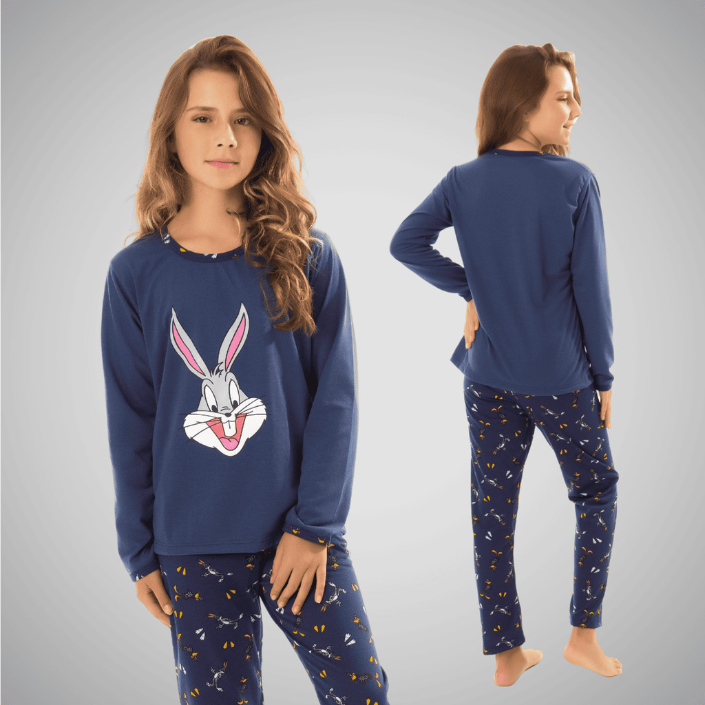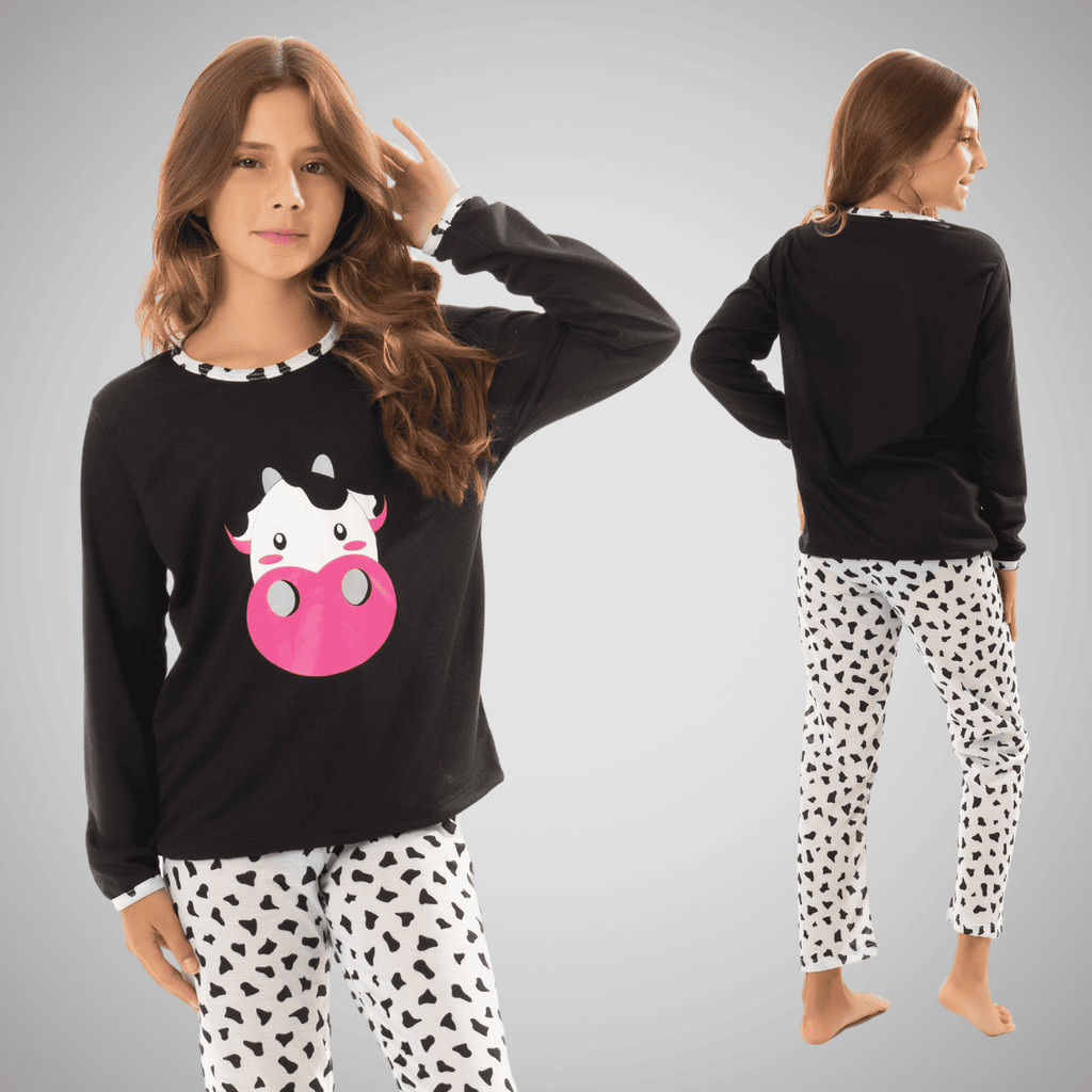Pijama Infantil Menina Estampado Longo de Frio Roupa de Dormir Feminino Inverno
