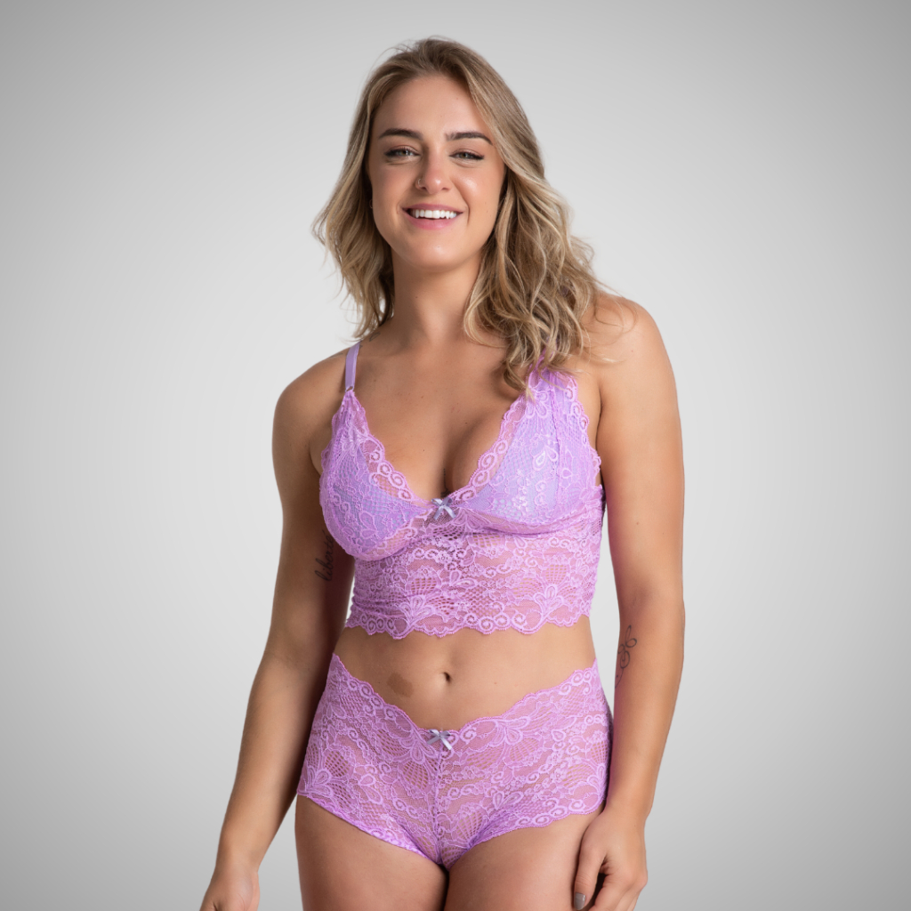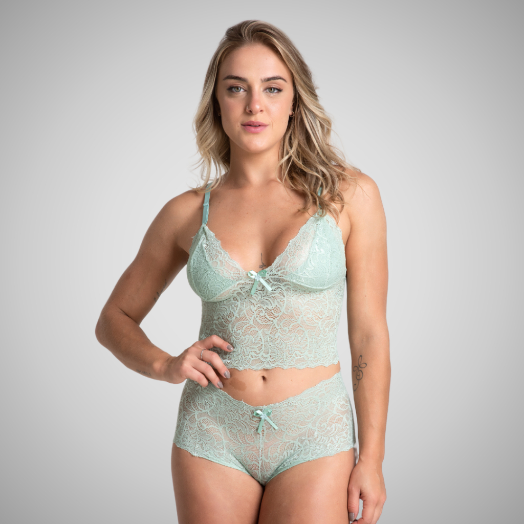 Conjunto Calesson Cropped Calcinha Box Rendada Trabalhado Renda Sexy Linha Noite Espera Marido 303