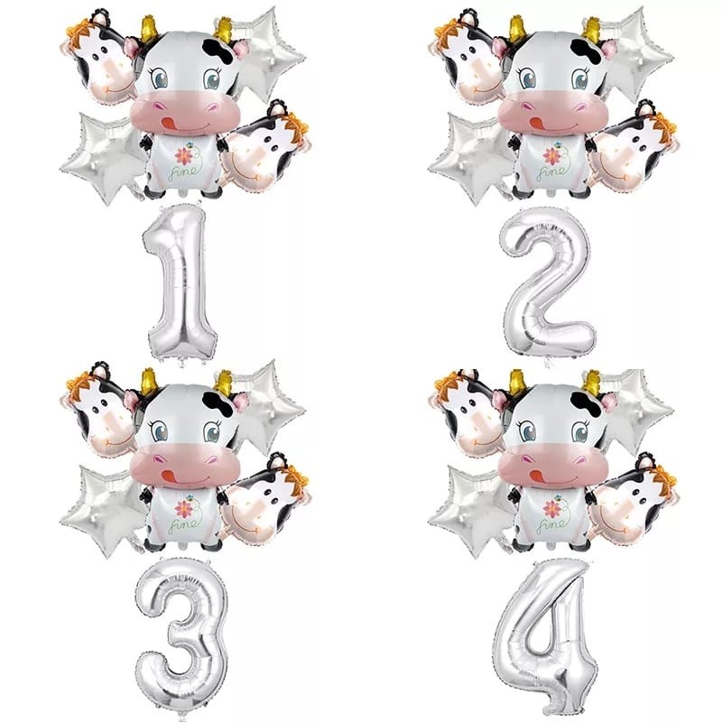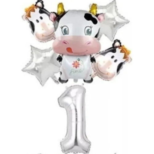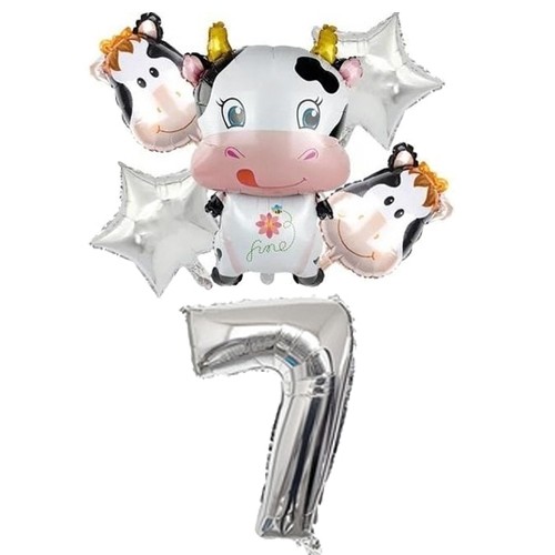 Kit 6 Balão Metalizado Vaca Vaquinha Fazendinha Animal Número Estrela Decoração Festa Enfeite