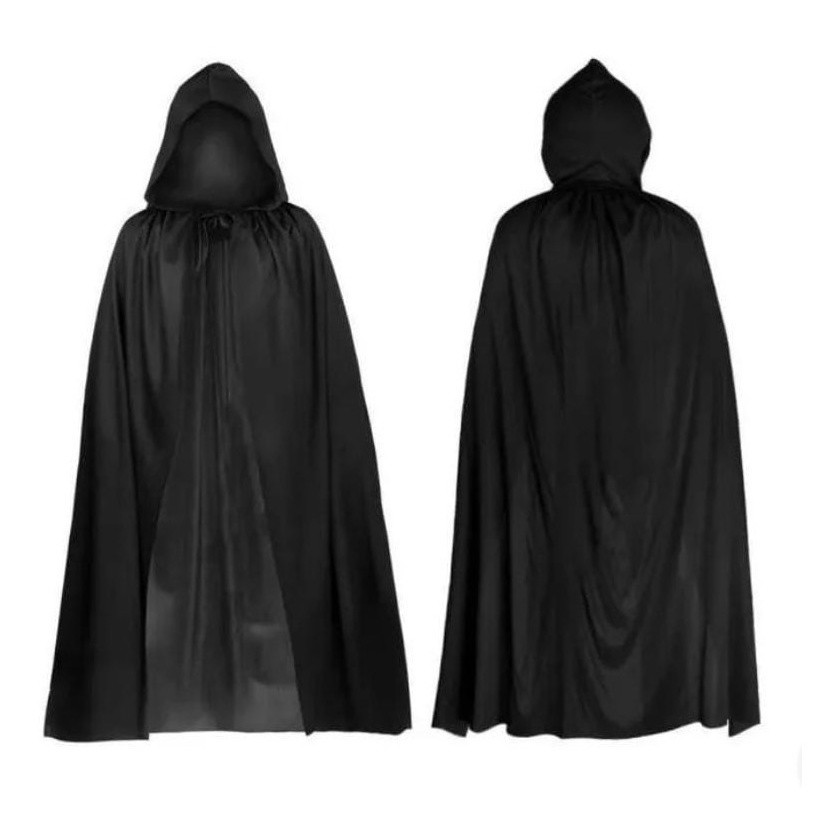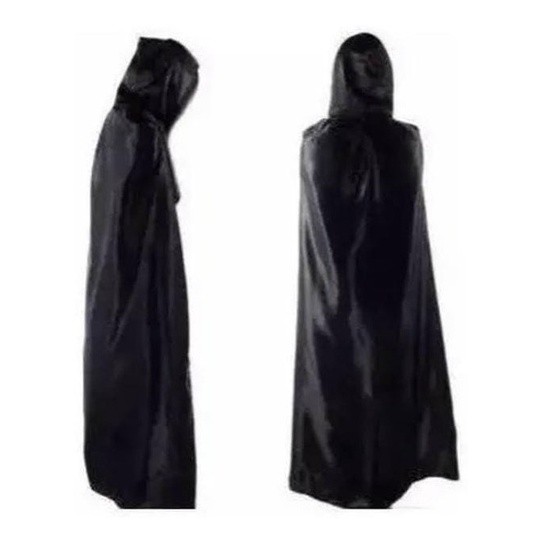Capa com Capuz Preta Morte Infantil 100cm Festa Halloween Vampiro Fantasia Drácula Morte Ceifador