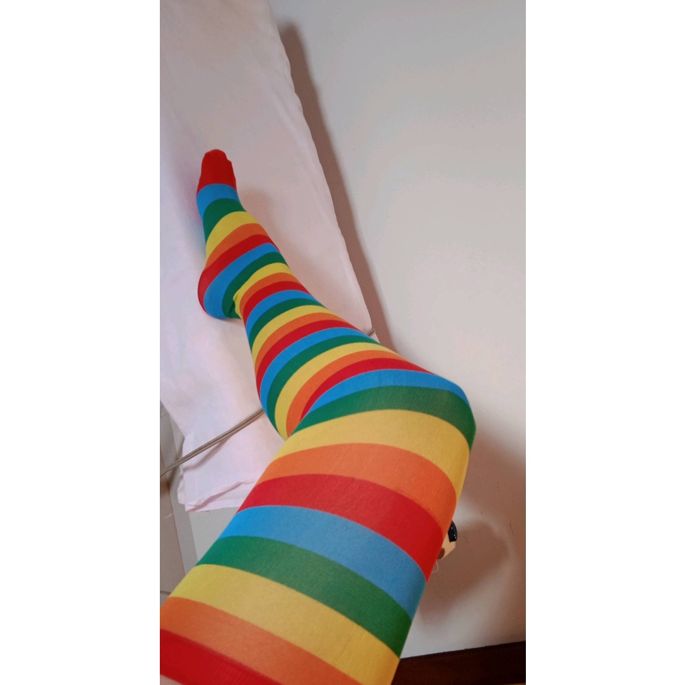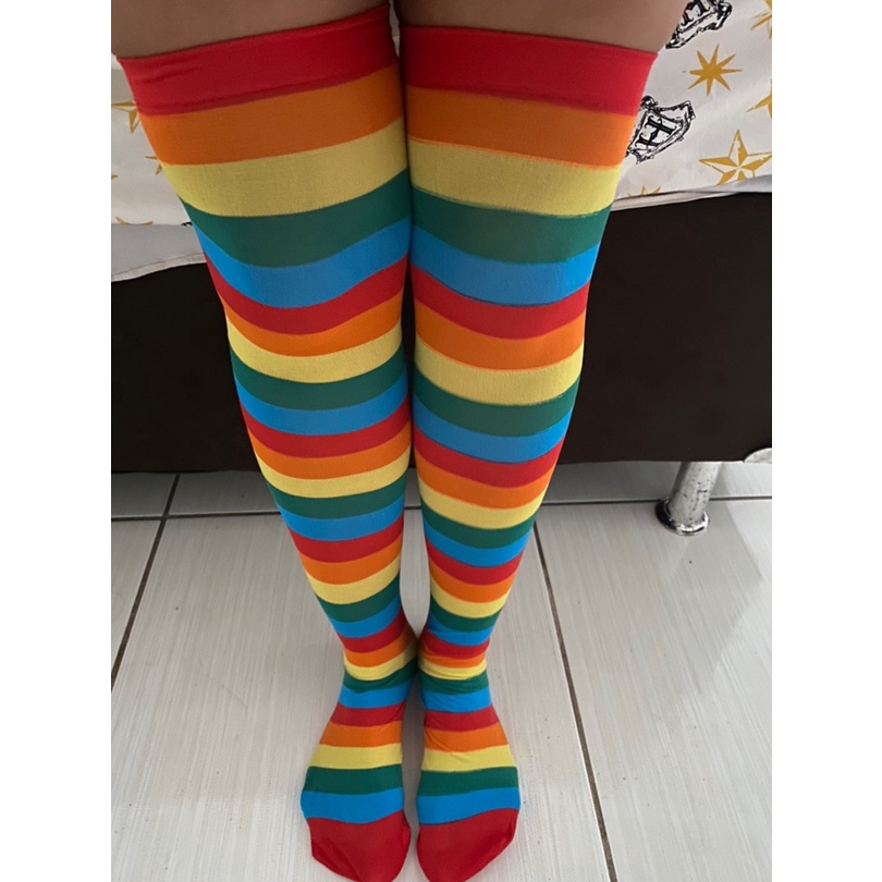 Meia Listrada Colorida 7/8 Acessório Fantasia Festa Fantasia