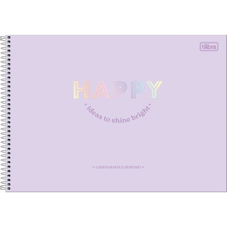 CADERNO DE CARTOGRAFIA E DESENHO ESPIRAL CAPA DURA HAPPY 80 FOLHAS
