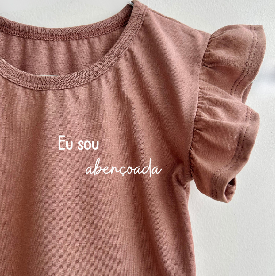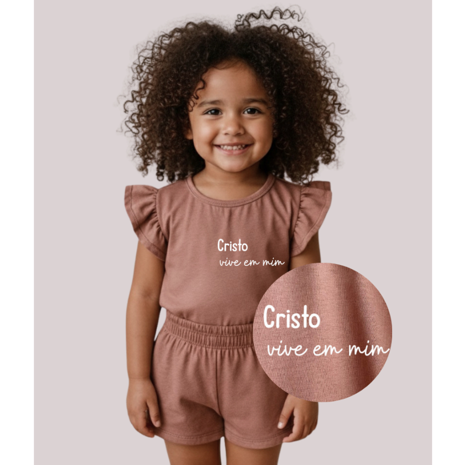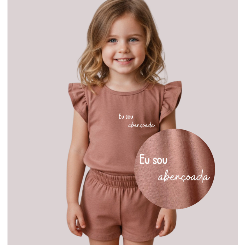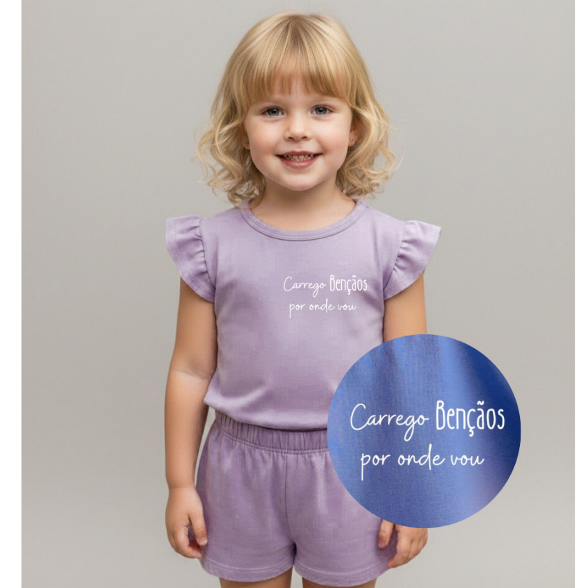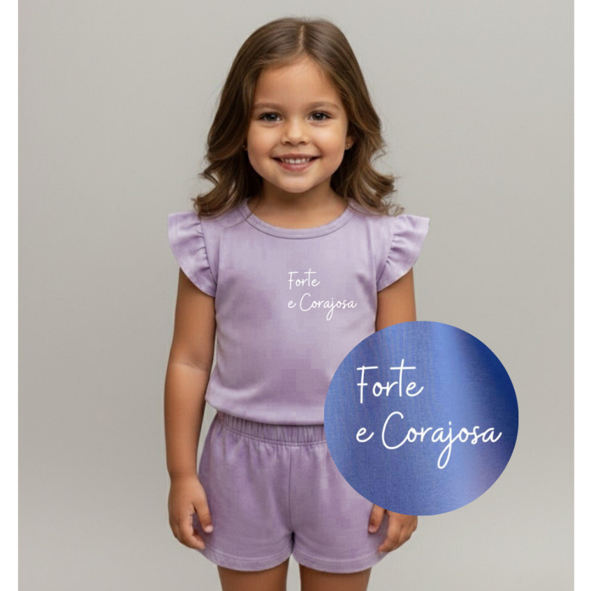 Conjunto Infantil Menina com Frases de Fé | Camiseta + Shorts em Algodão Confortável
