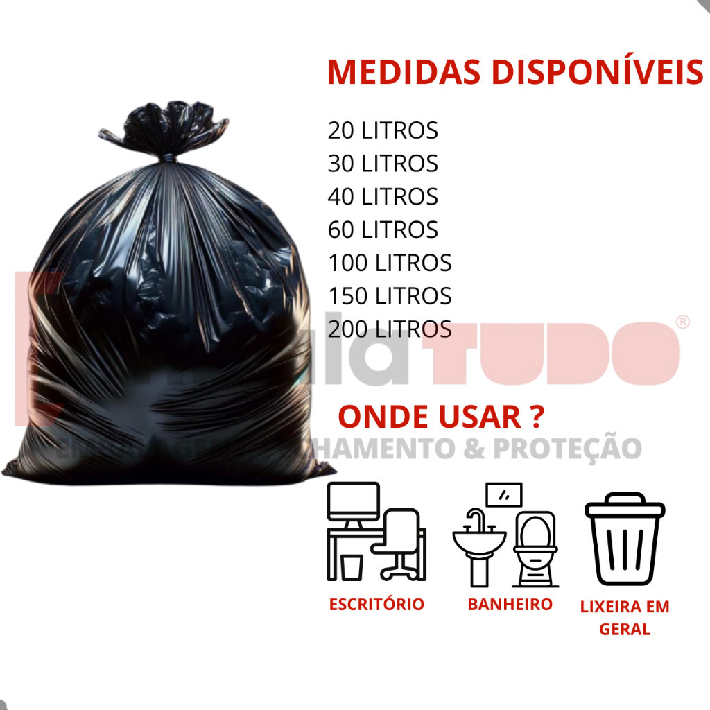 Saco de Lixo 60 Litros Resistente Pacote com 100 unidades Preto 0.6 micras Direto da Fábrica